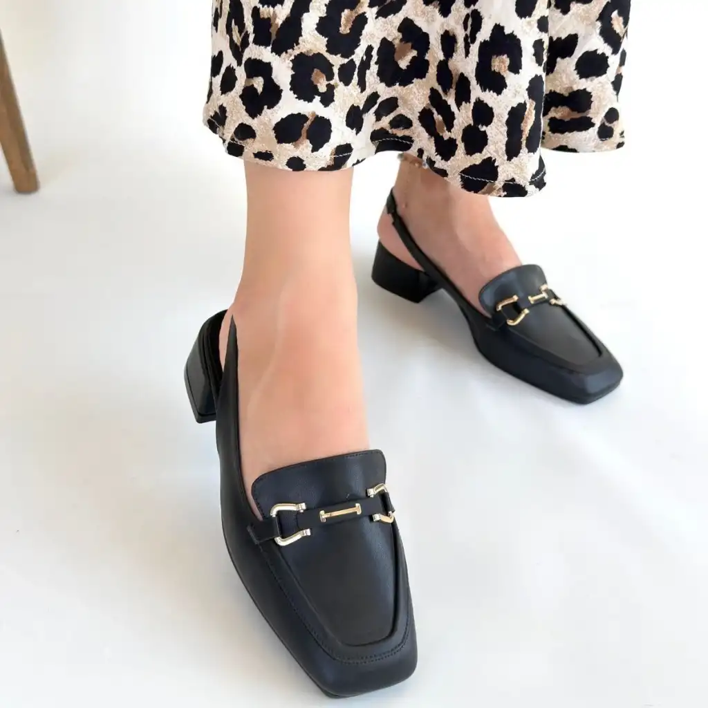 JOONE SİYAH CİLT TOPUKLU AYAKKABI