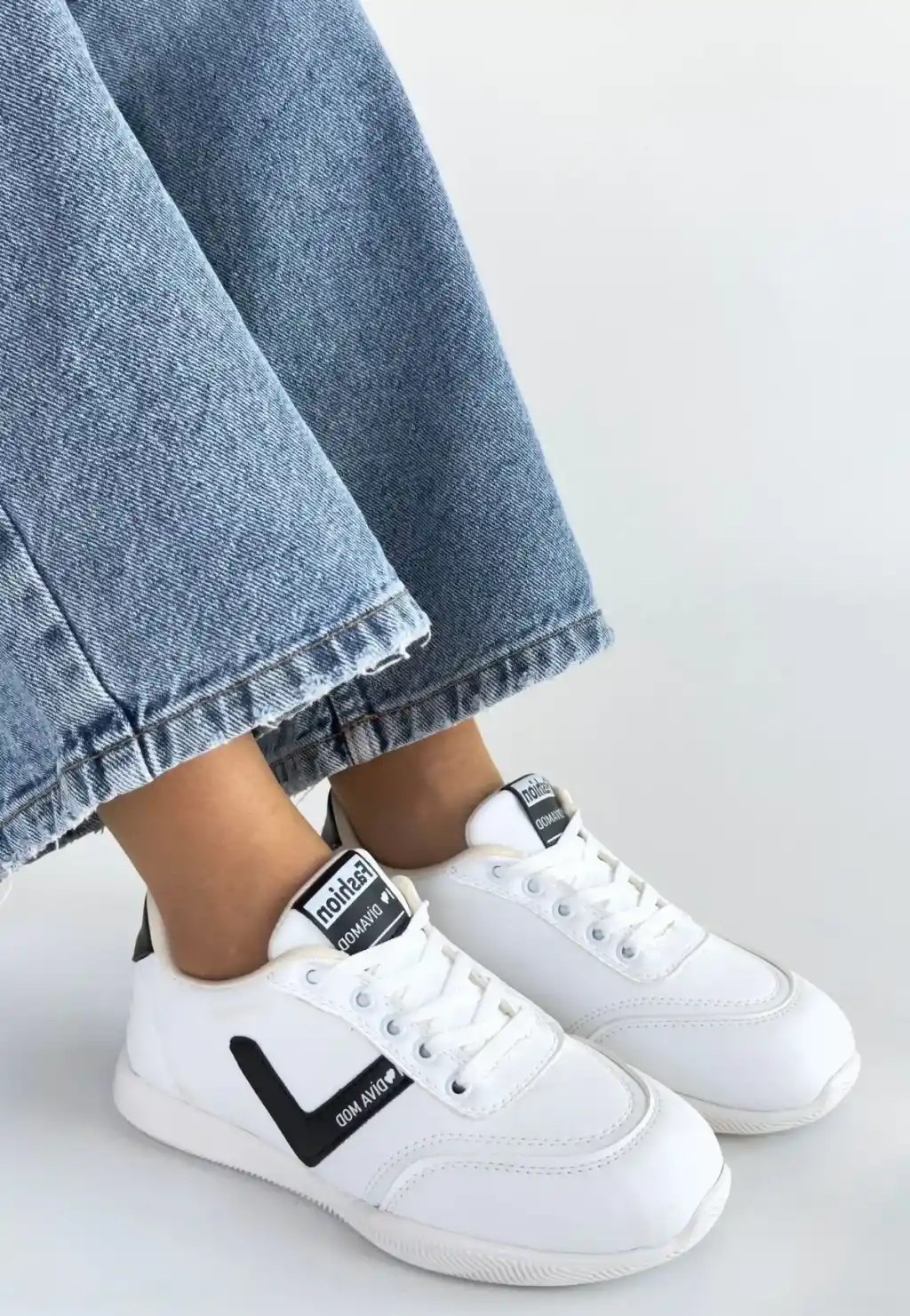 Jowen Beyaz Cilt Siyah Detaylı Bağcıklı Spor Ayakkabı
