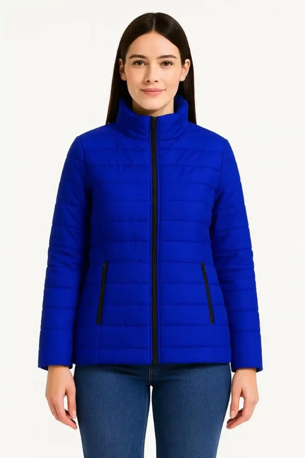 Kadın Bomber Mont Ceket – Su İtici Kumaş, Kapitone Astarlı, Fermuarlı, Kışlık - Saks Mavisi