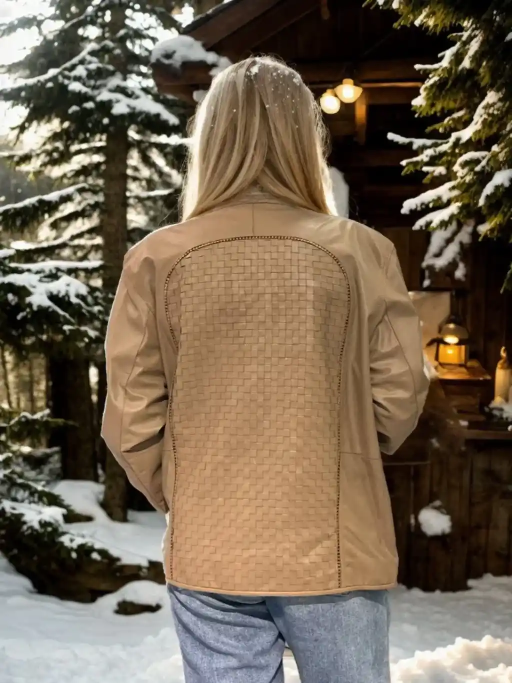 Kadın Fileli Deri Ceket - Krem