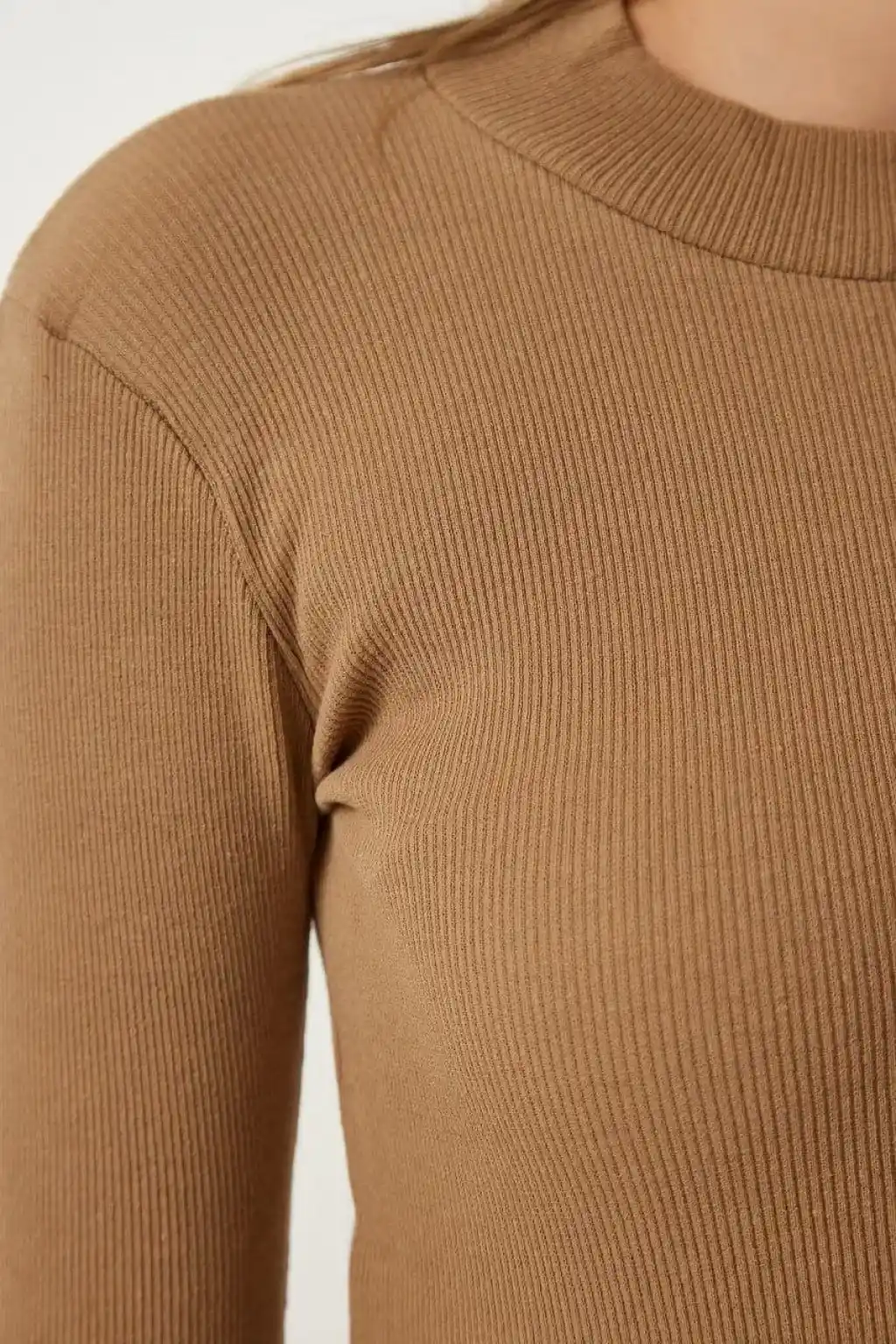 Kadın Full Likralı Fitilli Kaşkorse Body - Kahve