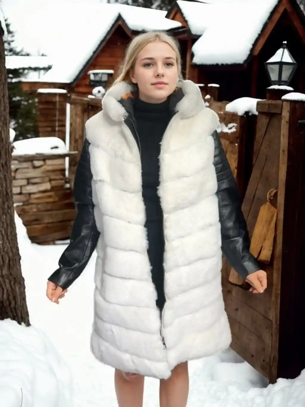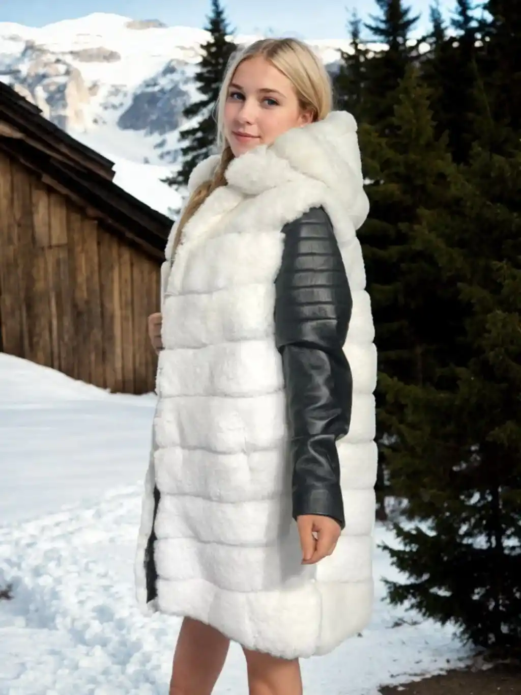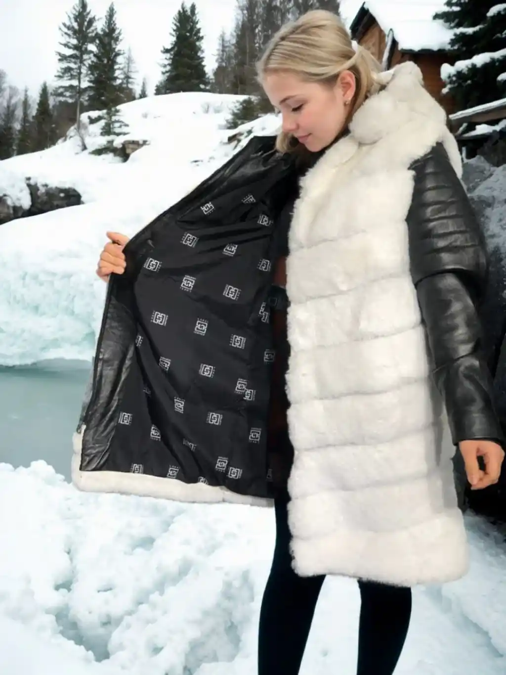 Kadın Hakiki Deri ve Suni Kürk - Beyaz