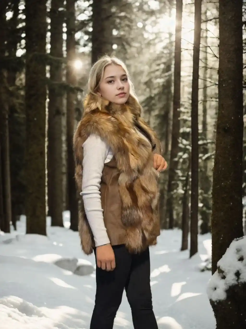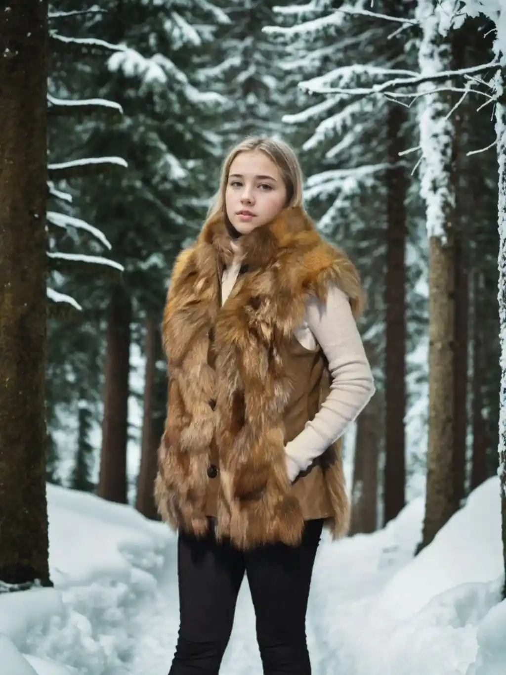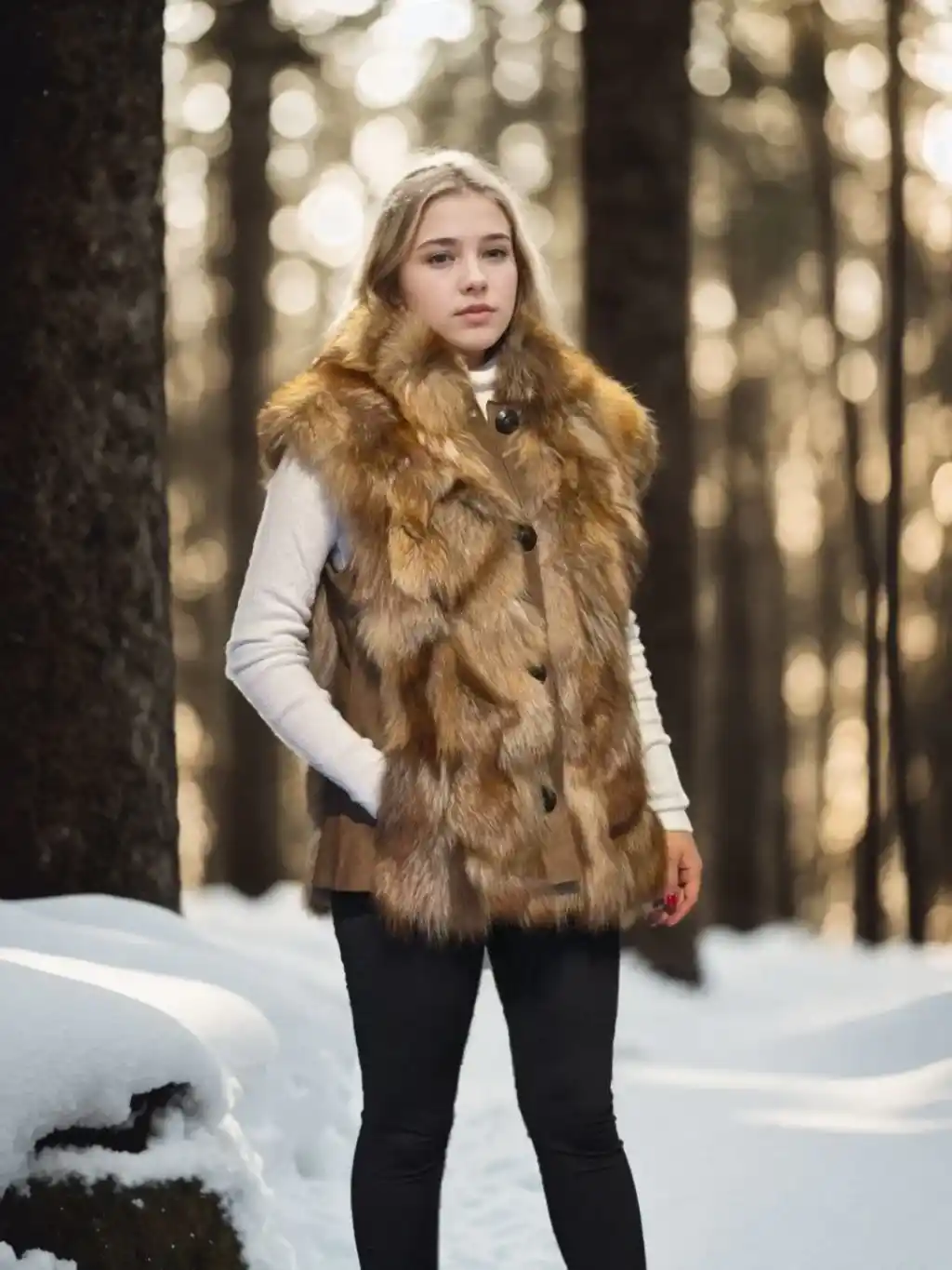 Kadın Kolsuz Hakiki Deri Kürk - Kahve