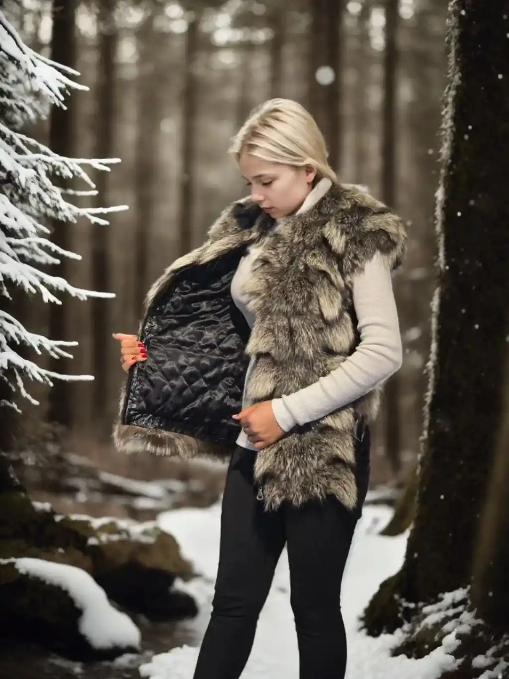 Kadın Kolsuz Hakiki Deri Kürk - Siyah