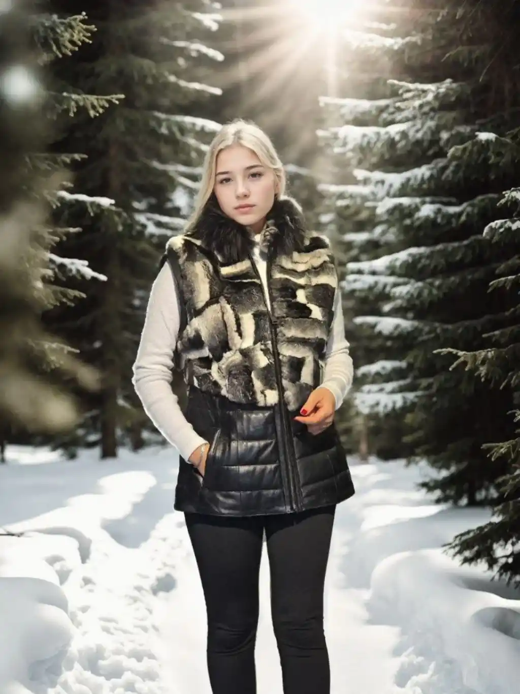 Kadın Kolsuz Hakiki Deri Kürk - Beyaz