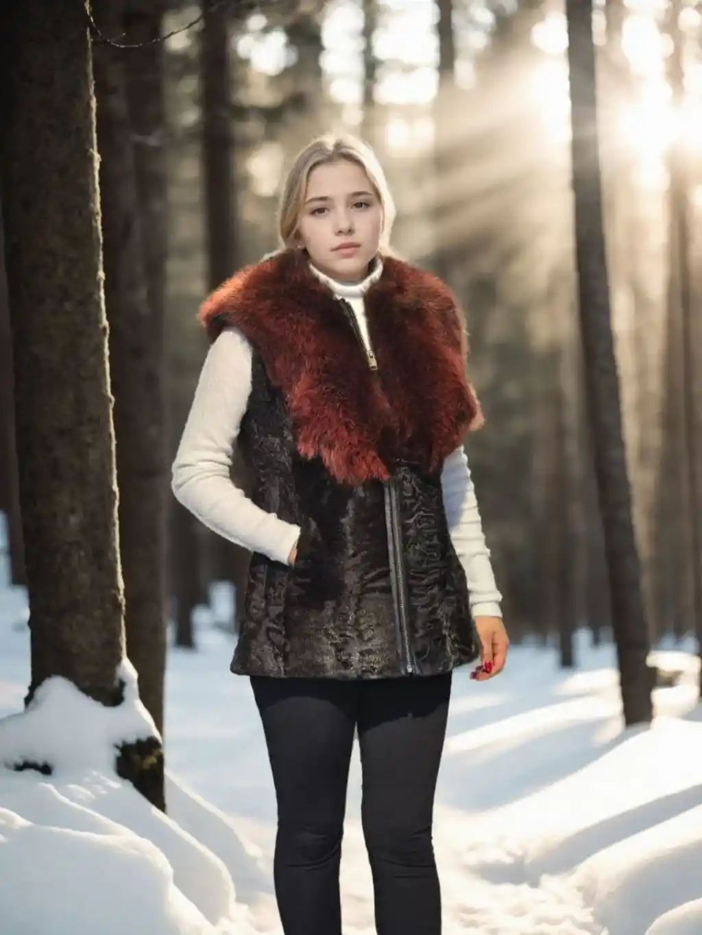 Kadın Kolsuz Hakiki Kürk - Siyah