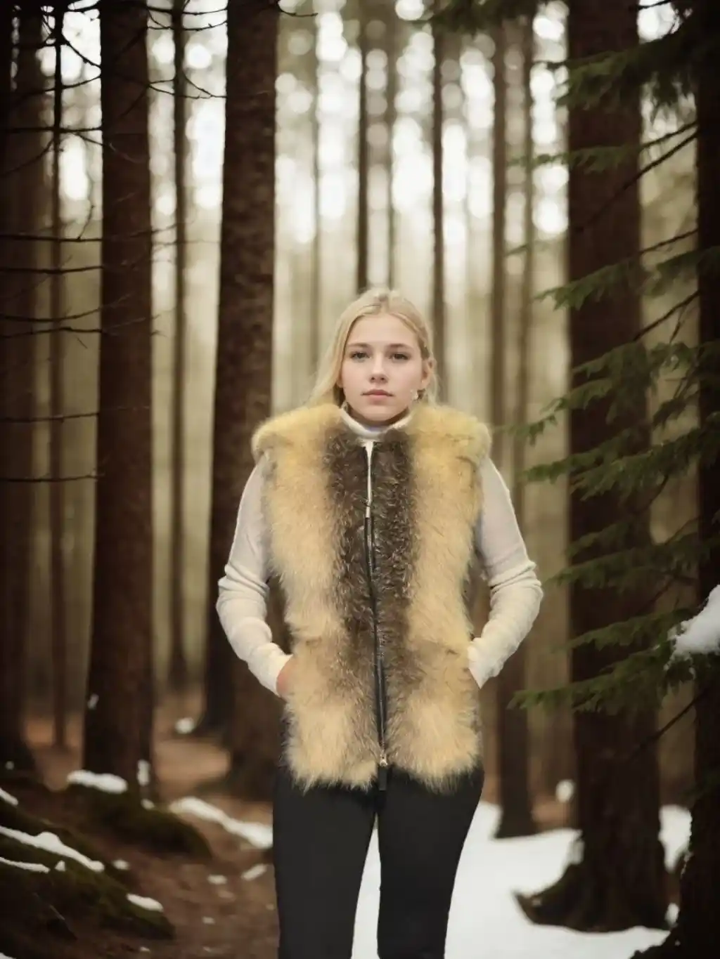 Kadın Kolsuz Hakiki Kürk - Siyah