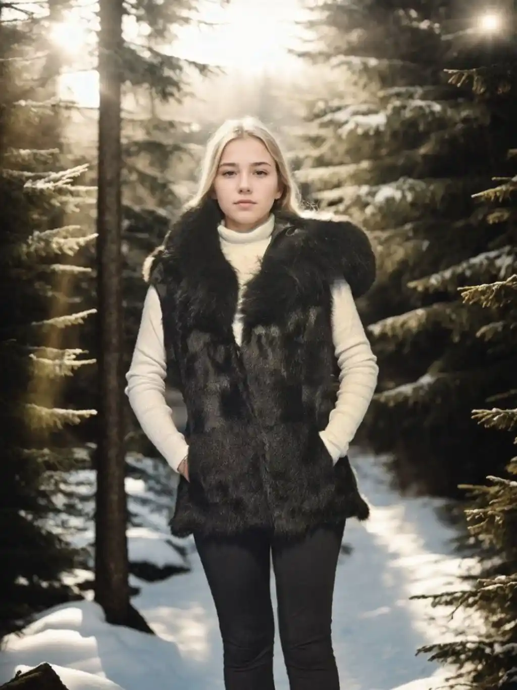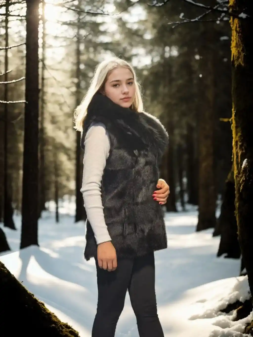 Kadın Kolsuz Kapüşonlu Yelek - Siyah