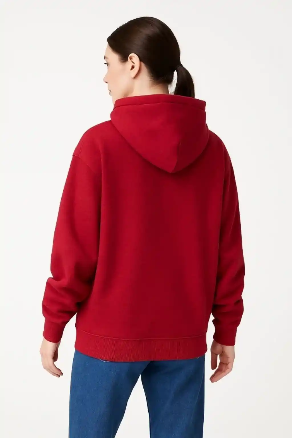 Kadın Samuray Ninja Çift Kapüşonlu Maske Detaylı Fermuarlı Kanguru Cepli Hoodie - Kırmızı