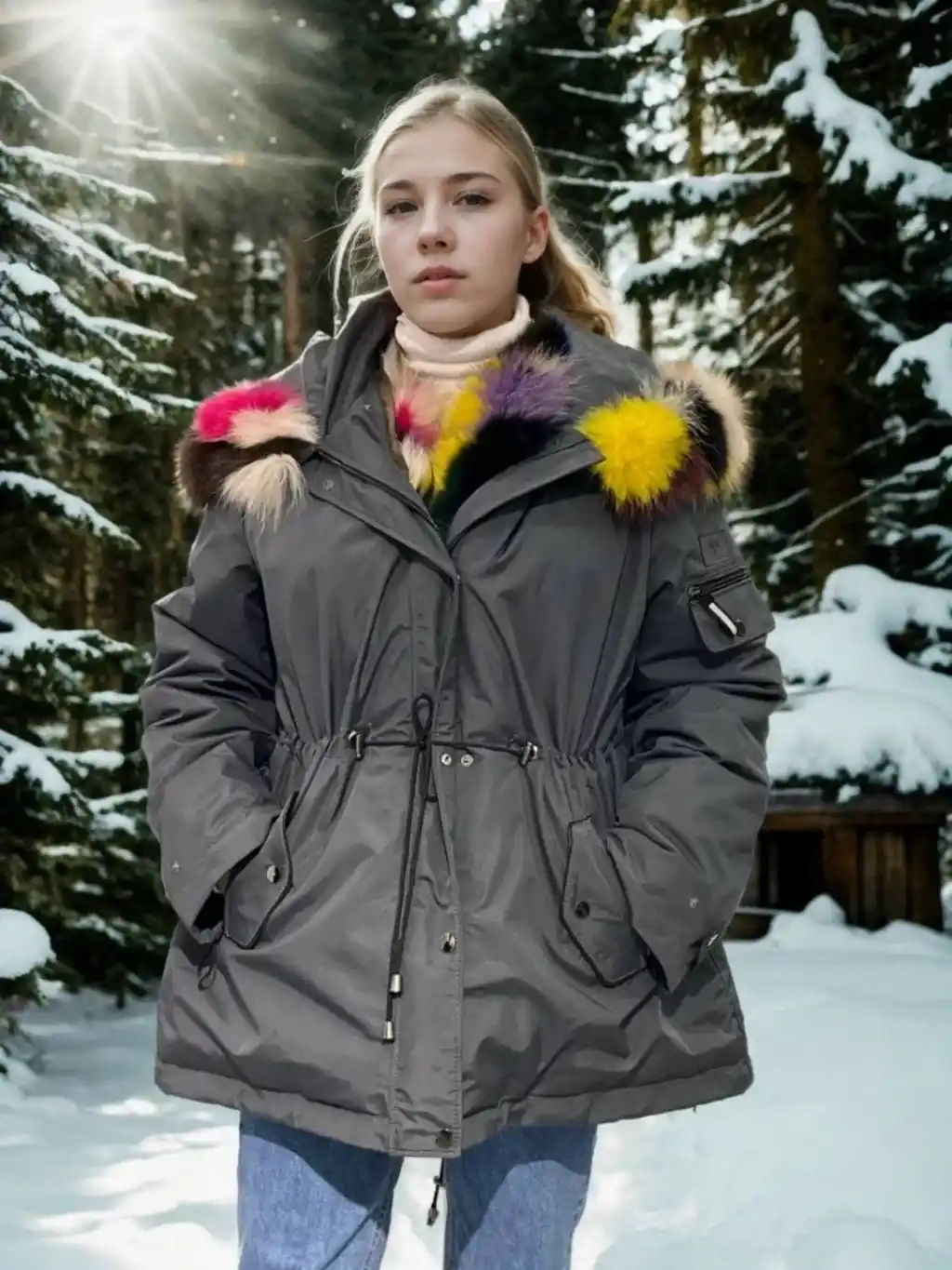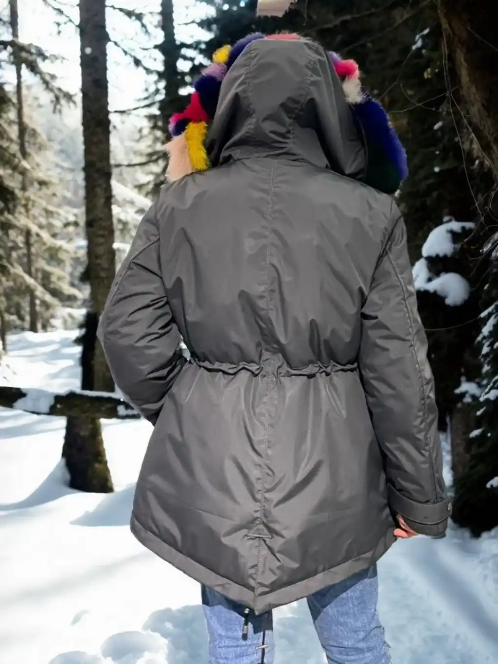 Kadın Su Geçirmez Kapüşonlu Mont - Füme