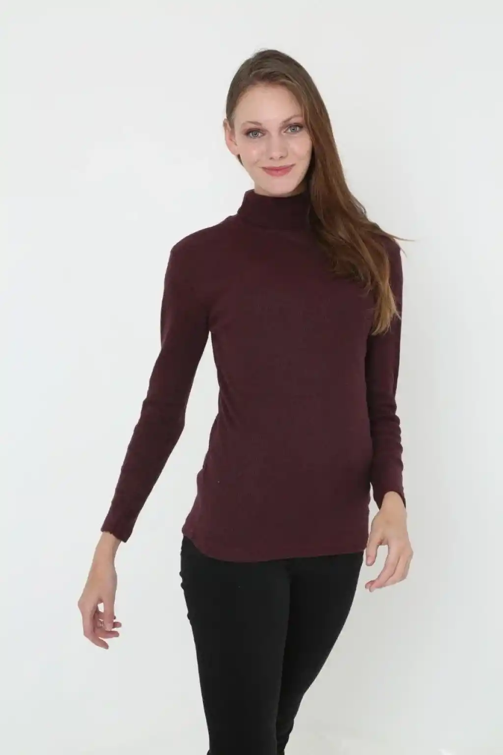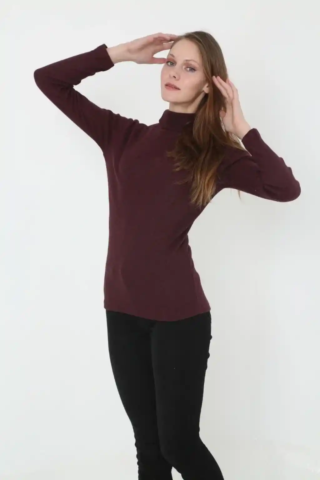 Kadın Tam Boğazlı Fitilli Likrali Koşkorse Badi - Bordo