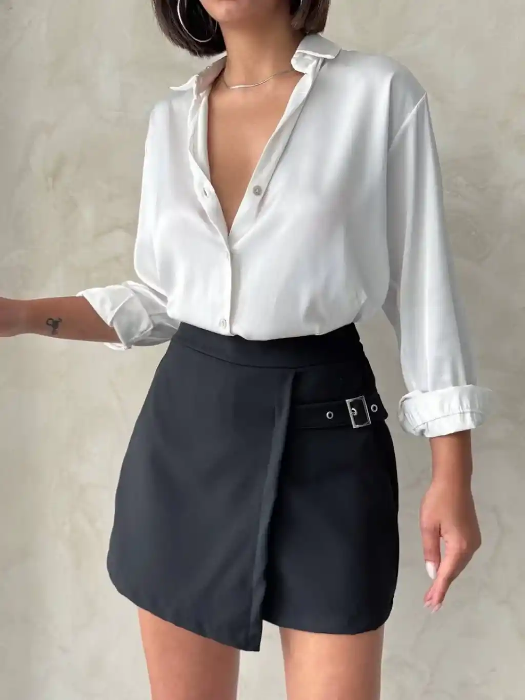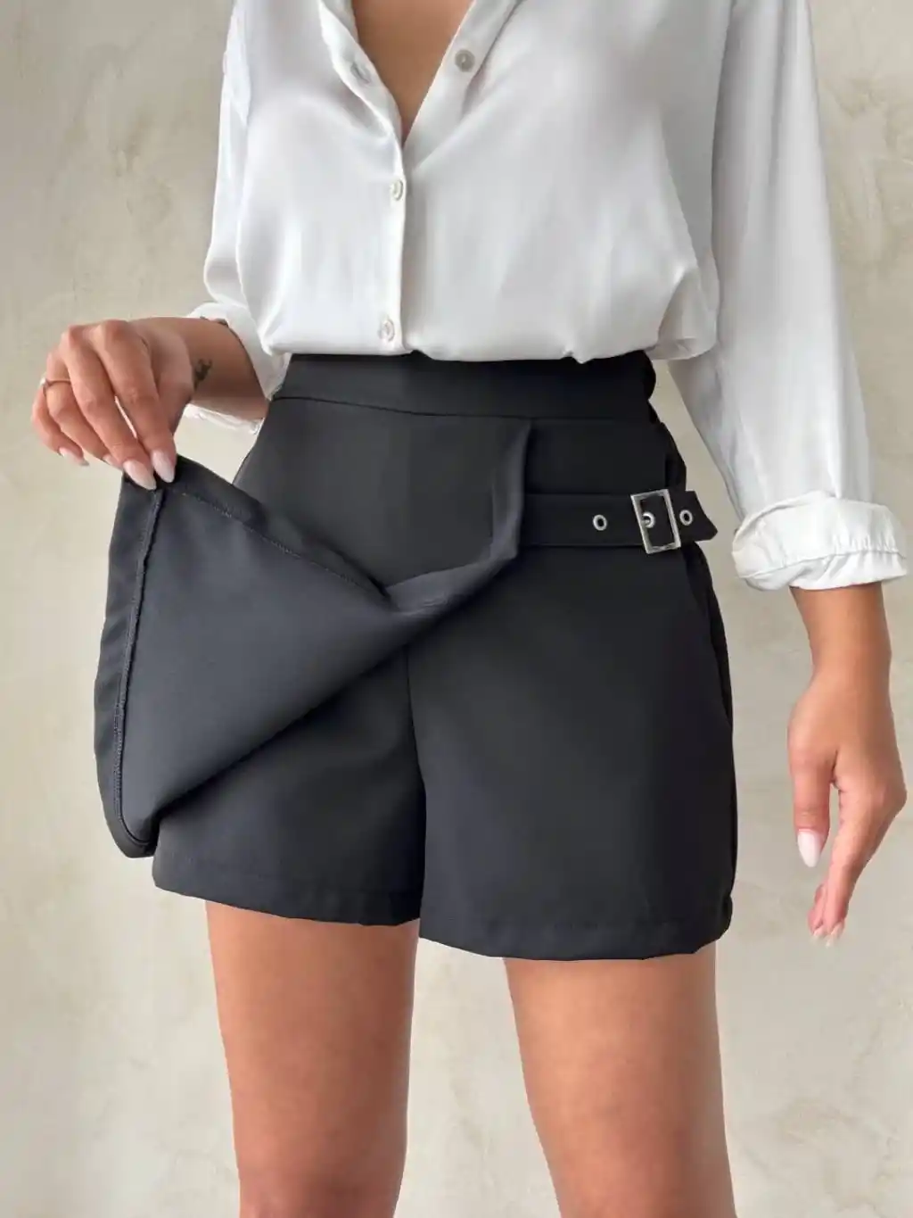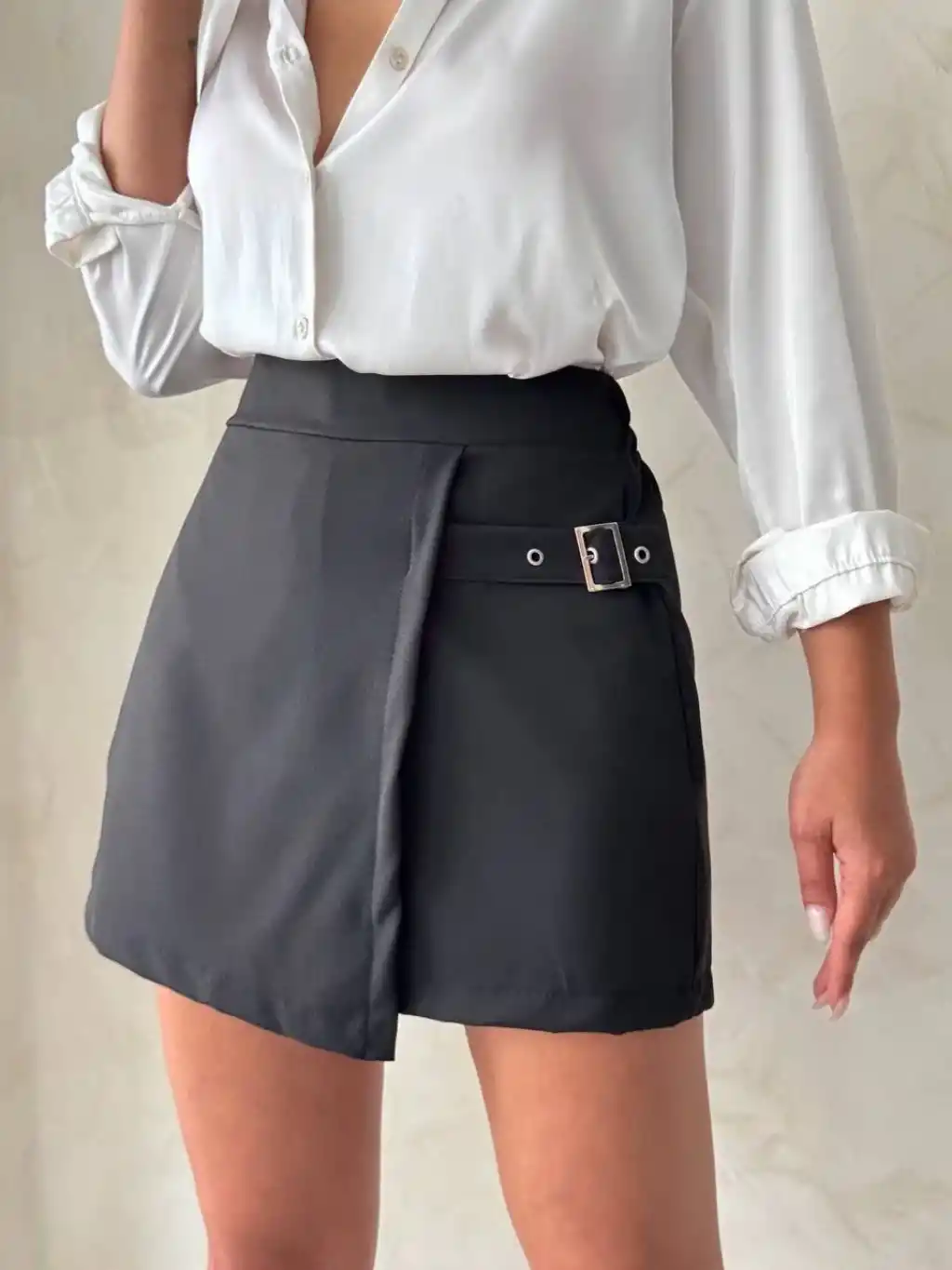 Kadın tokalı siyah şort etek, şıklık ve rahatlığı bir arada sunar. Markasız ürün, kaliteli kumaşı ve şık tasarımıyla öne çıkar.