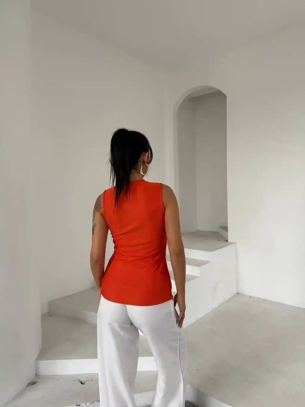 Kadın turuncu bisiklet yaka gold düğmeli ottoman bluz s2310