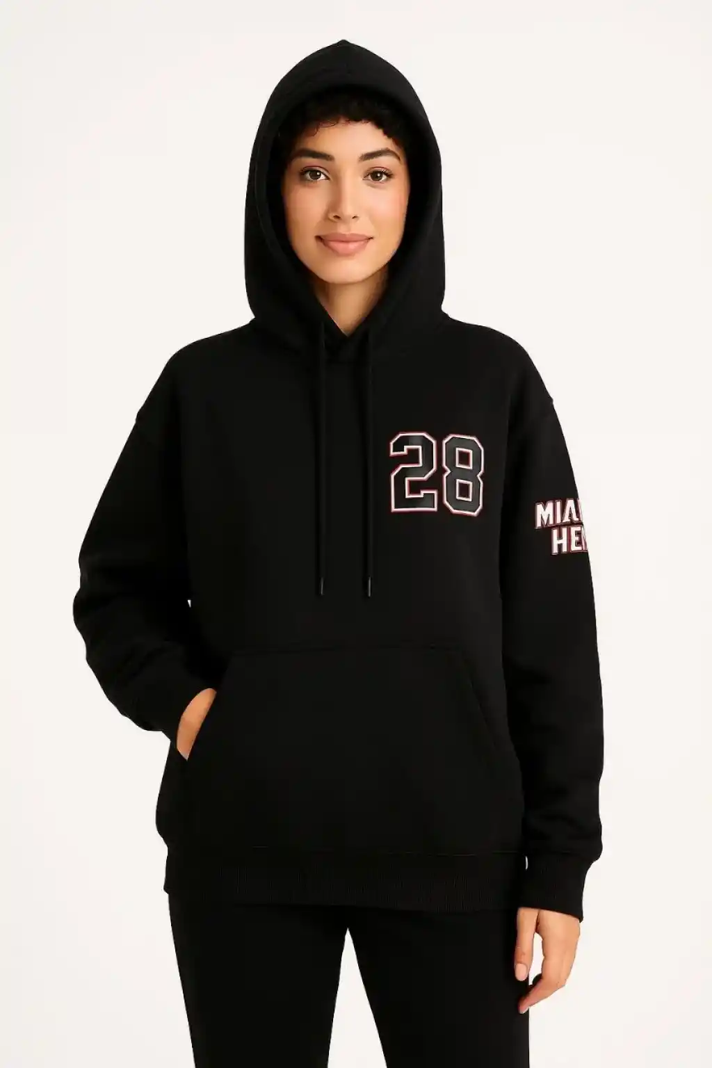 Kadın Üç İplik Kapüşonlu Ön ve Arka Baskılı SweatShirt hoodie - Siyah