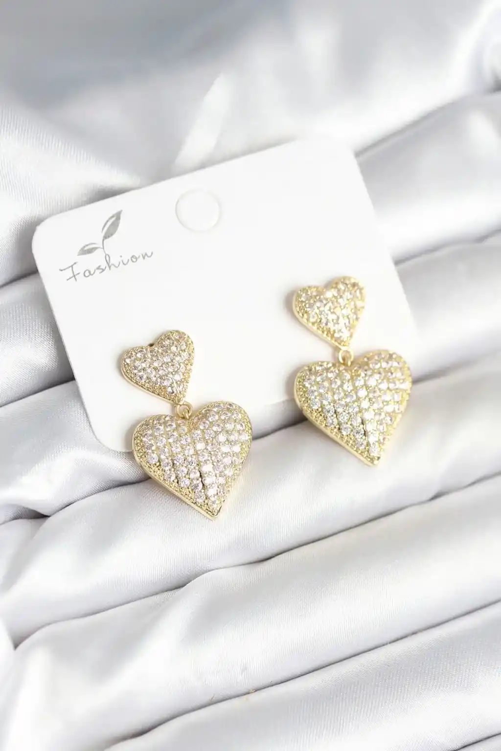 Kalp Model Zirkon Taşlı Gold Renk Pirinç Kadın Küpe