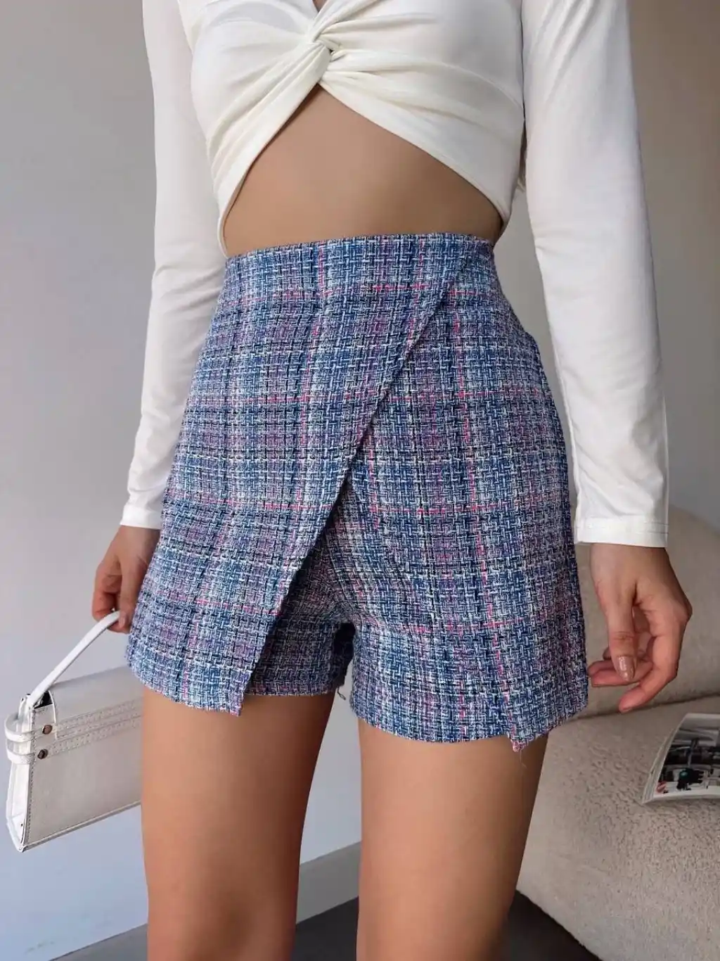 Şık ve rahat tasarımıyla dikkat çeken Kapaklı Tüvit Şort Etek, gardırobunuzun favori parçalarından biri olmaya aday!