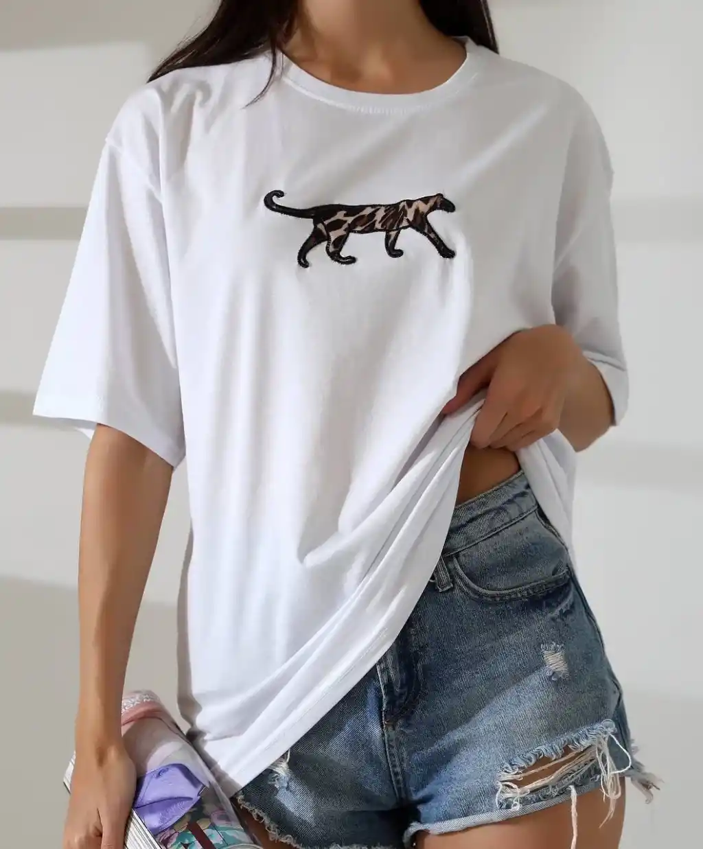 KAZAX markasının şık ve trendi bir parçası olan Kaplan nakış işlemeli Oversize tişört, gardırobunuzun vazgeçilmezi olmaya aday!