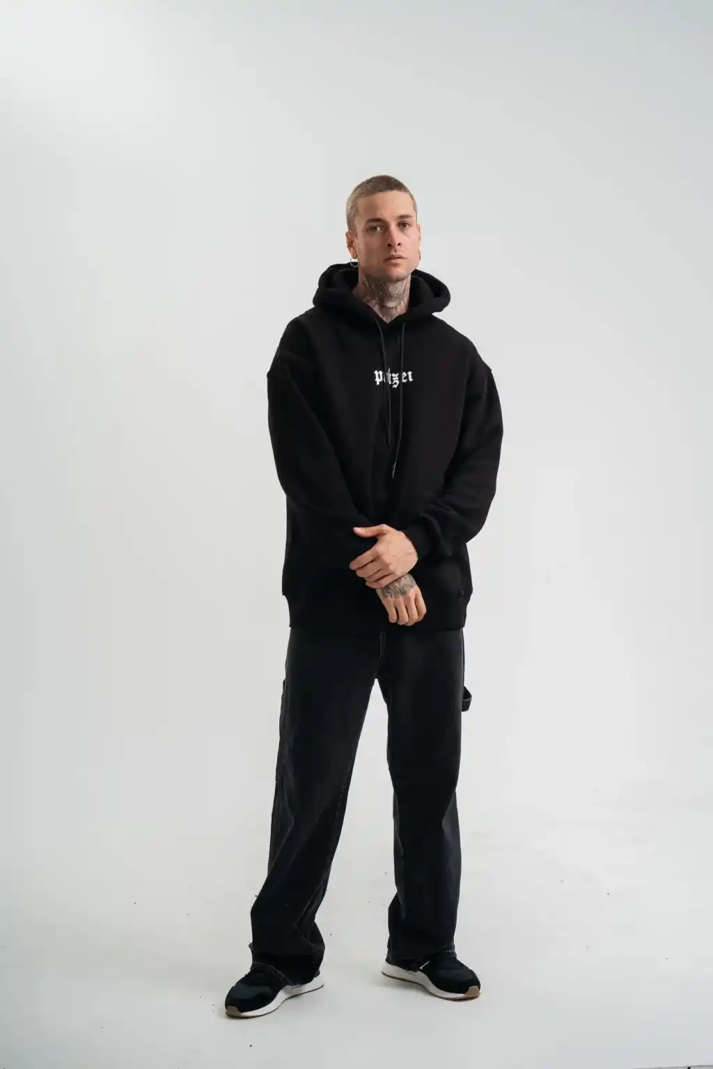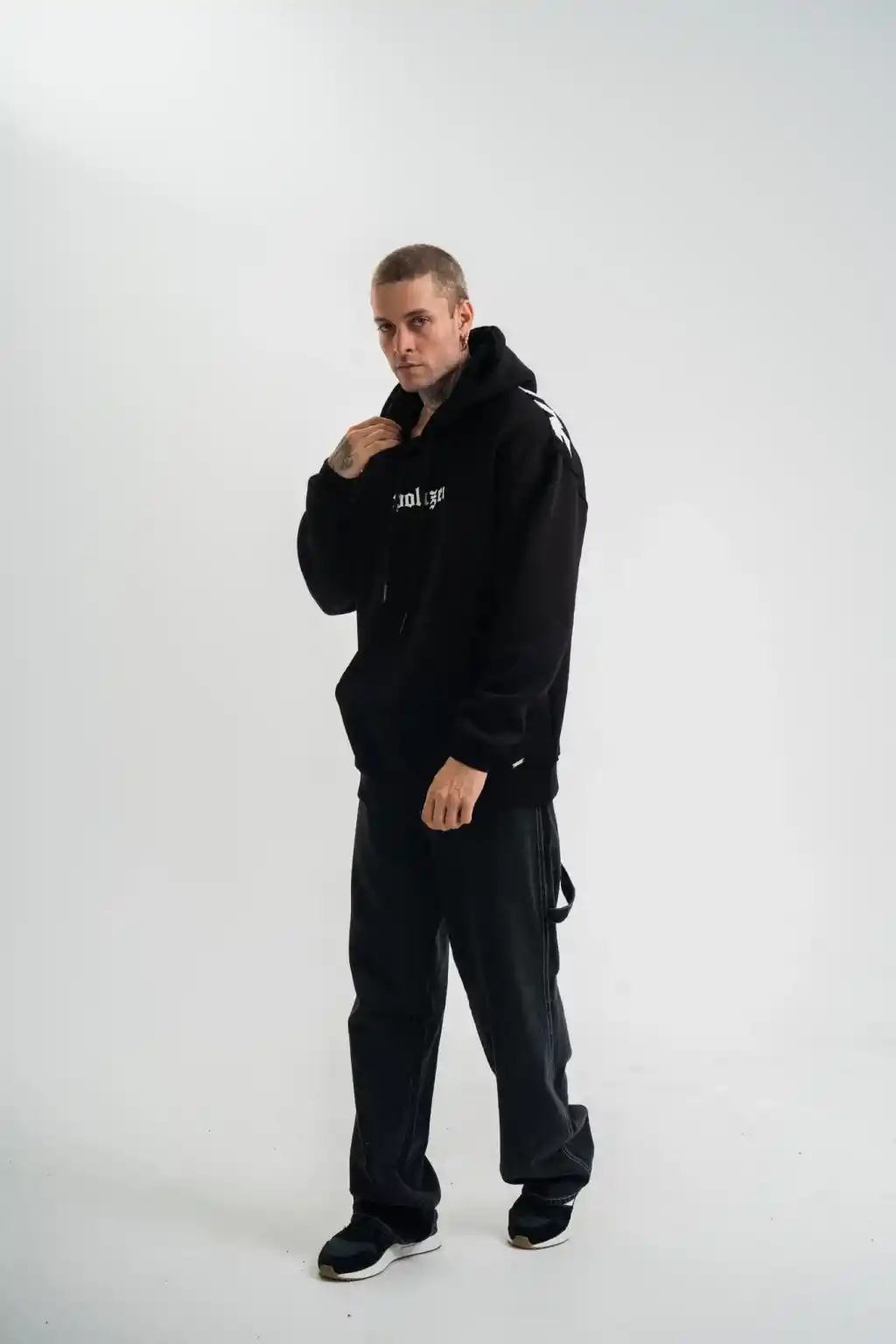 Kapşonlu Double Oversize Dijital Patchli SweatShirt - Siyah