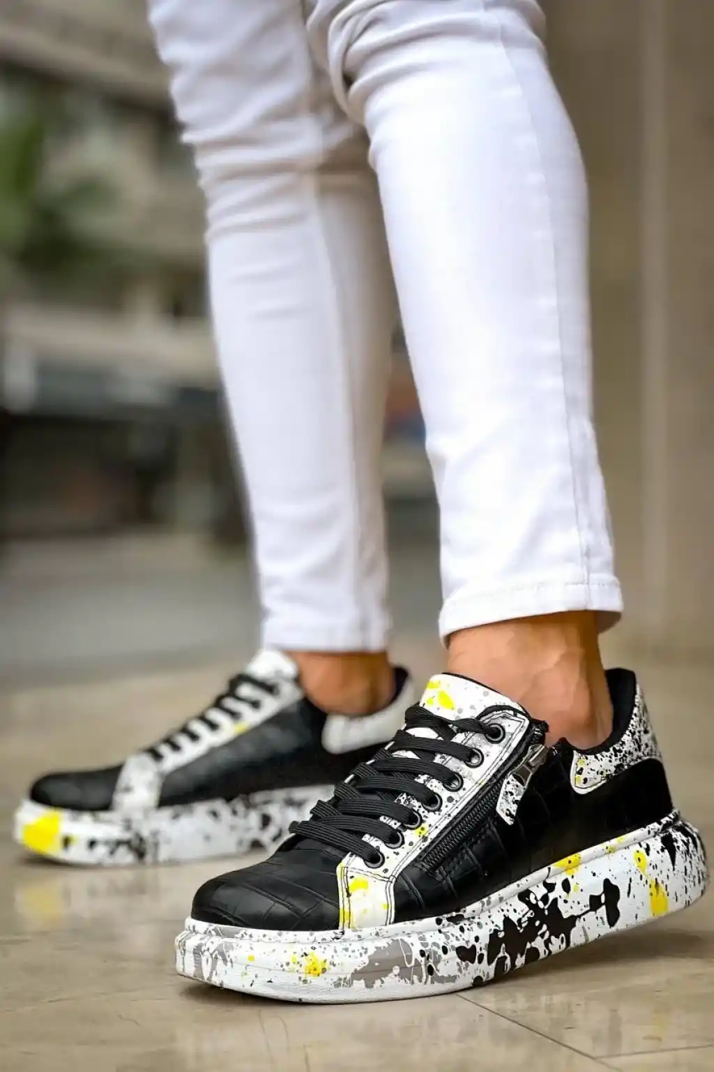 KB-02 Kuback Bağcıklı Crocodile Siyah Sarı Günlük Erkek Ayakkabı