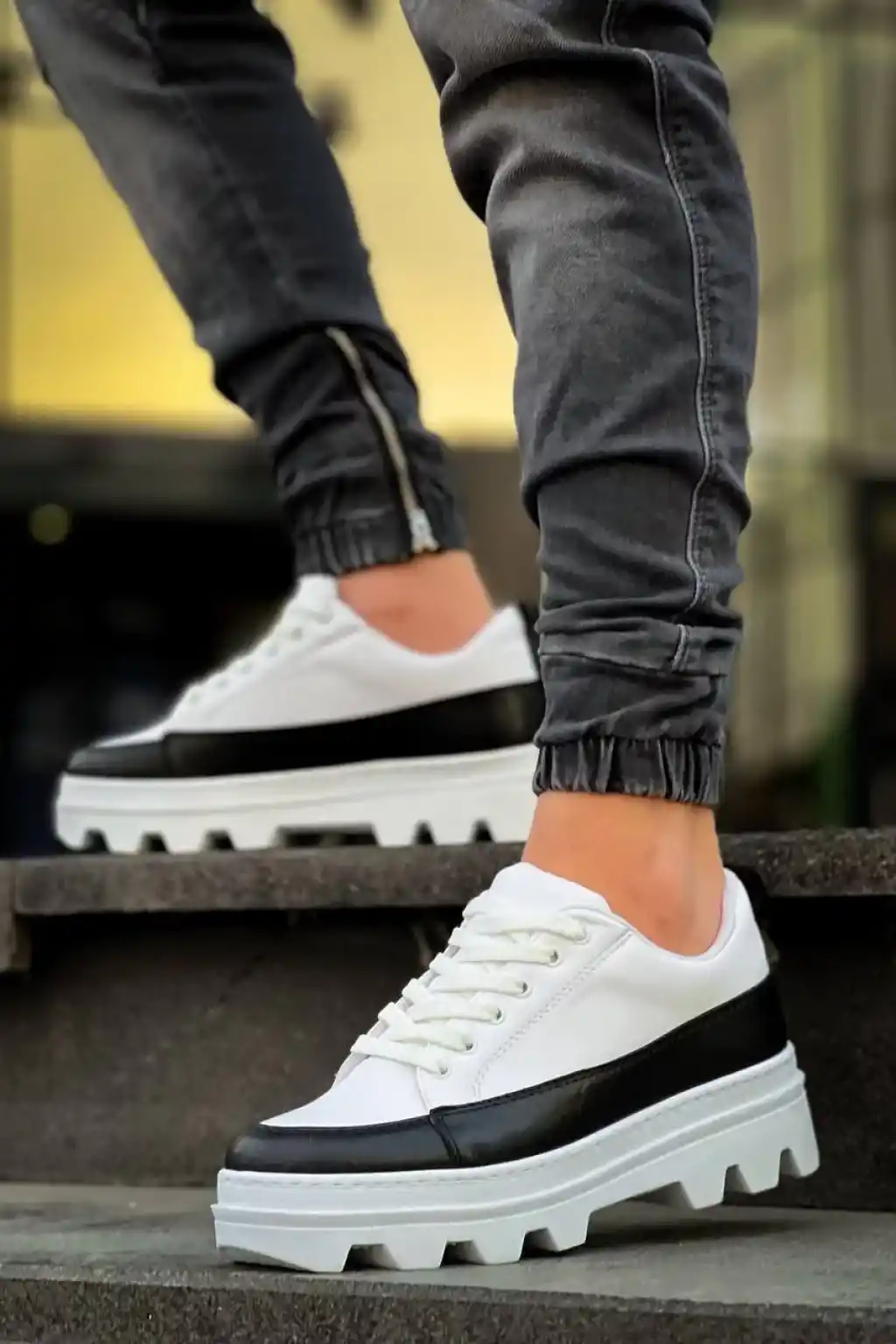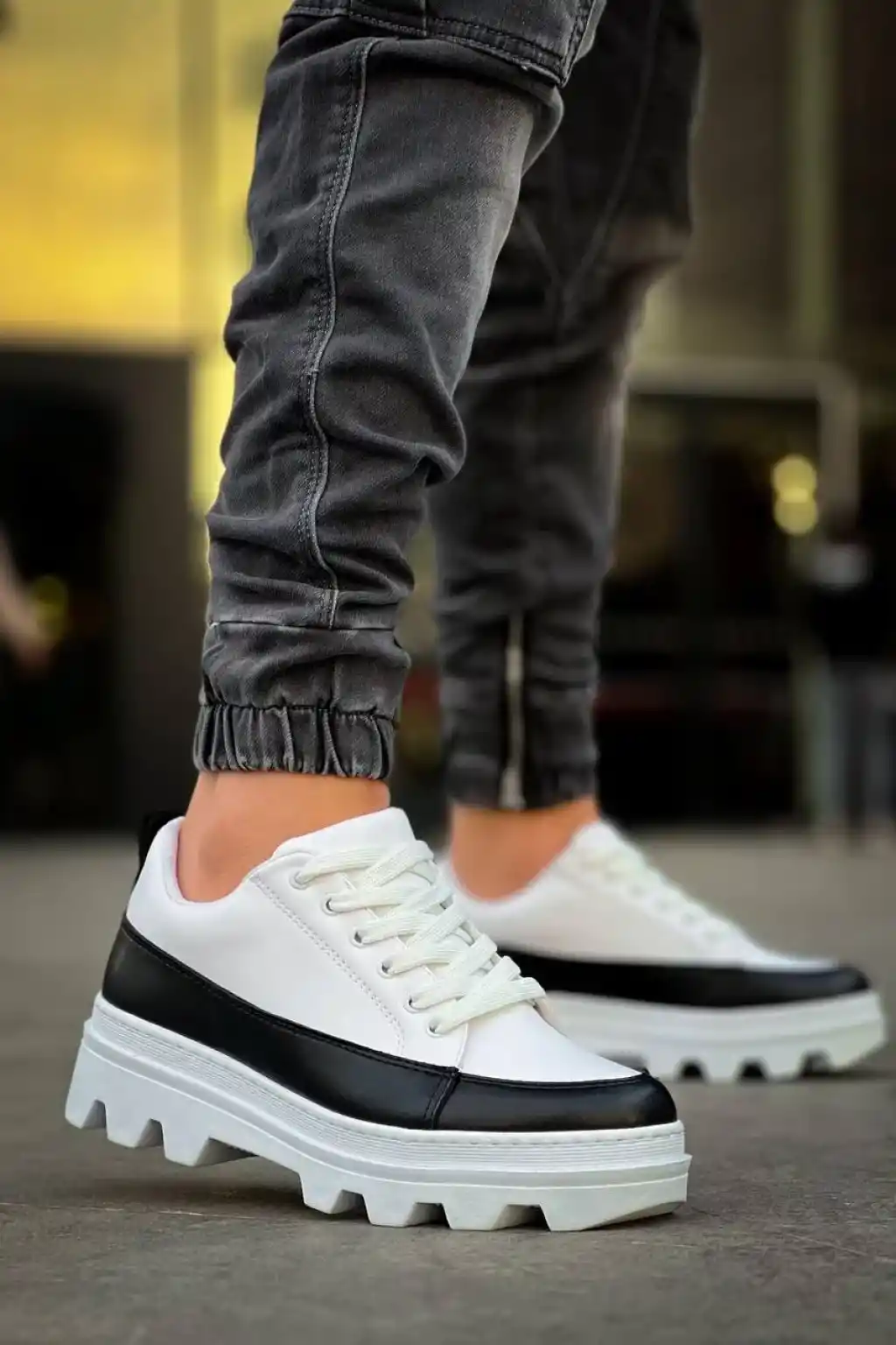 KB-056 Kuback Beyaz Siyah Detaylı Beyaz Yüksek Taban Günlük Spor Ayakkabı