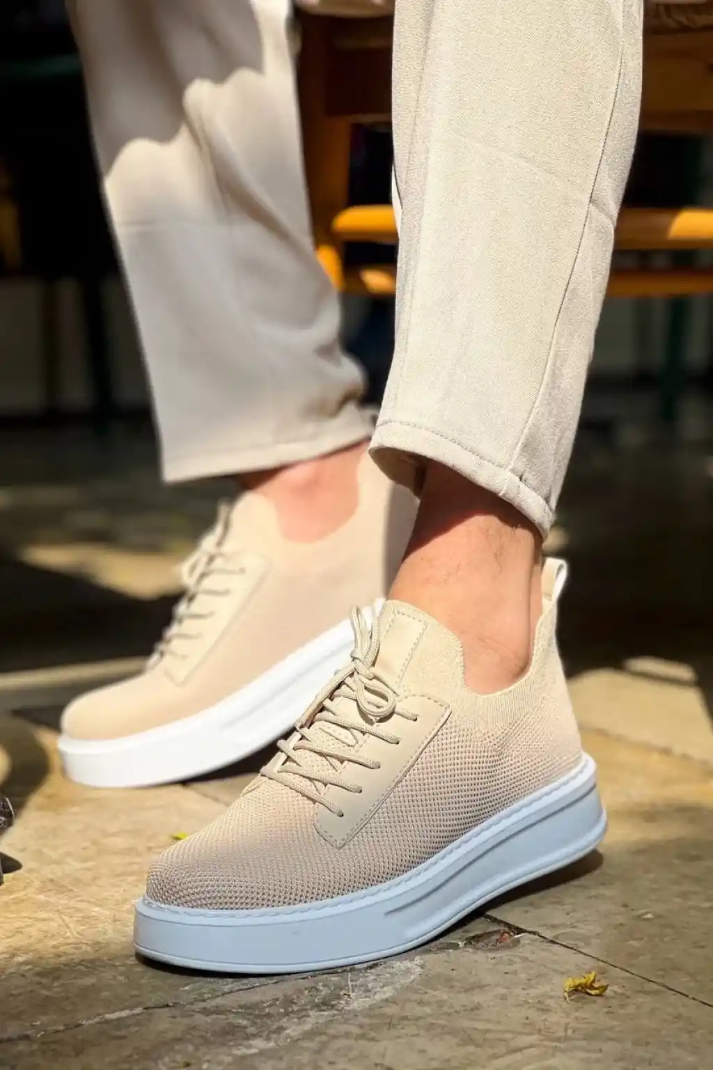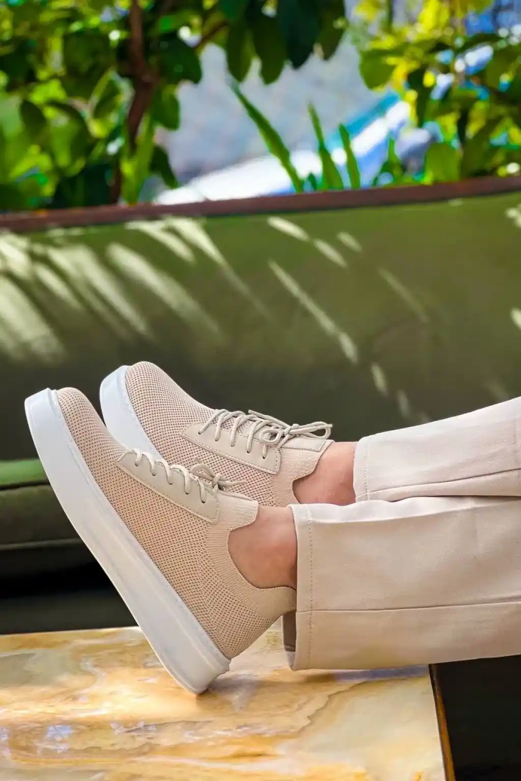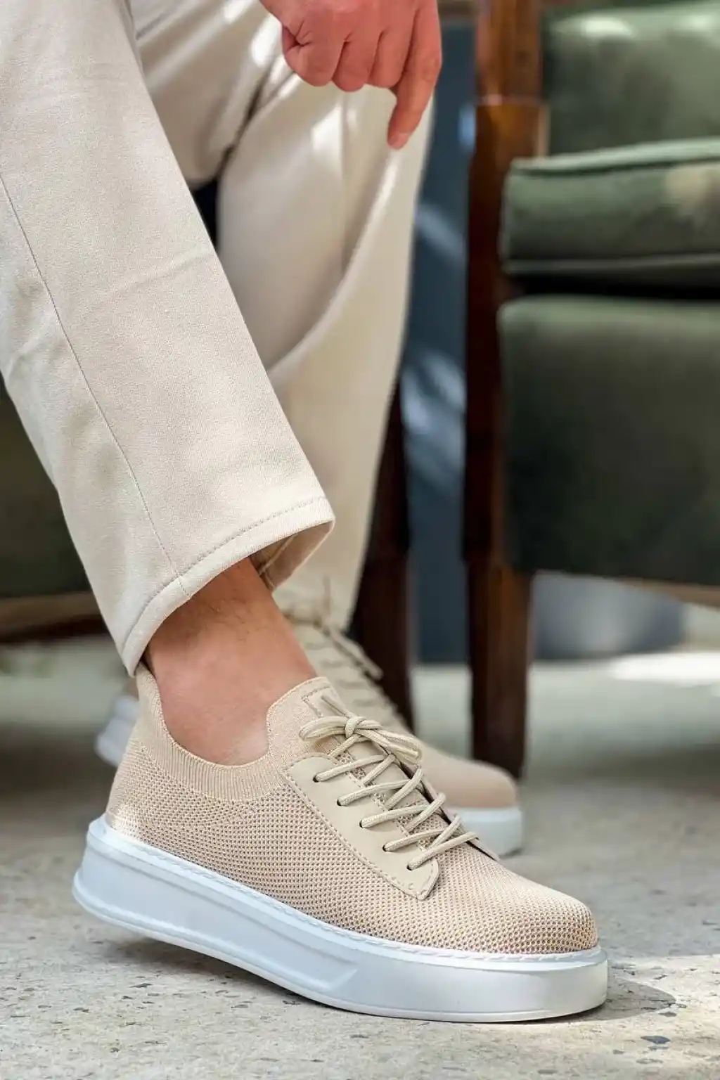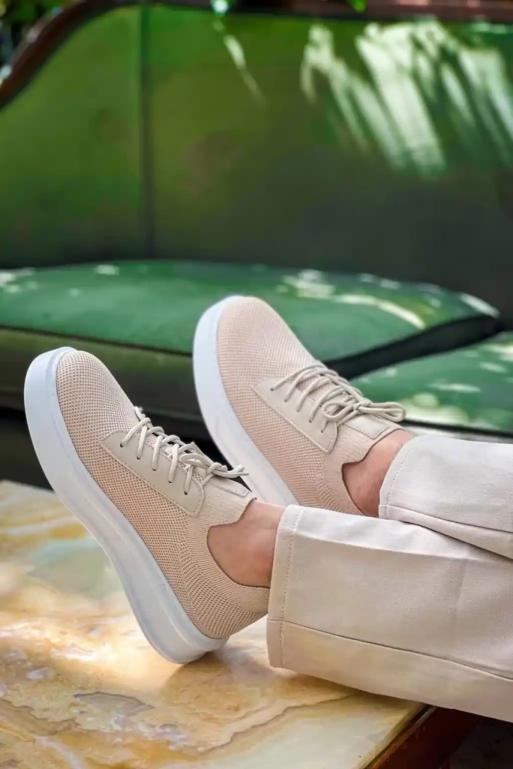 KB-116 Kuback Bej Bağcıklı Triko Günlük Erkek Ayakkabı