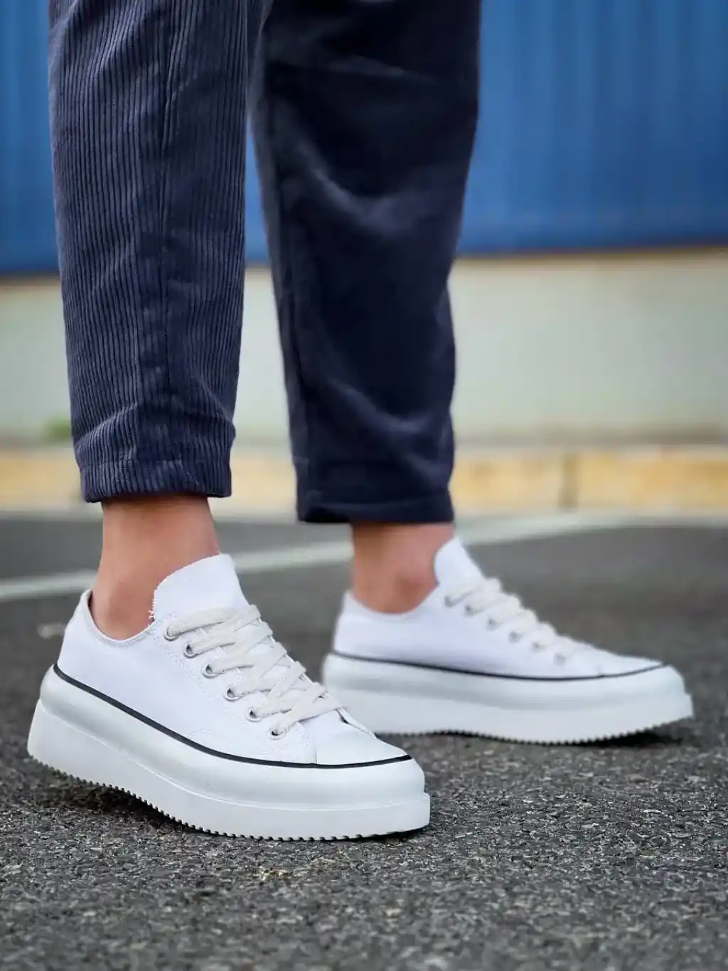 KB-CX-3 Kuback Kısa Beyaz Keten Beyaz Yüksek Taban Spor Ayakkabı