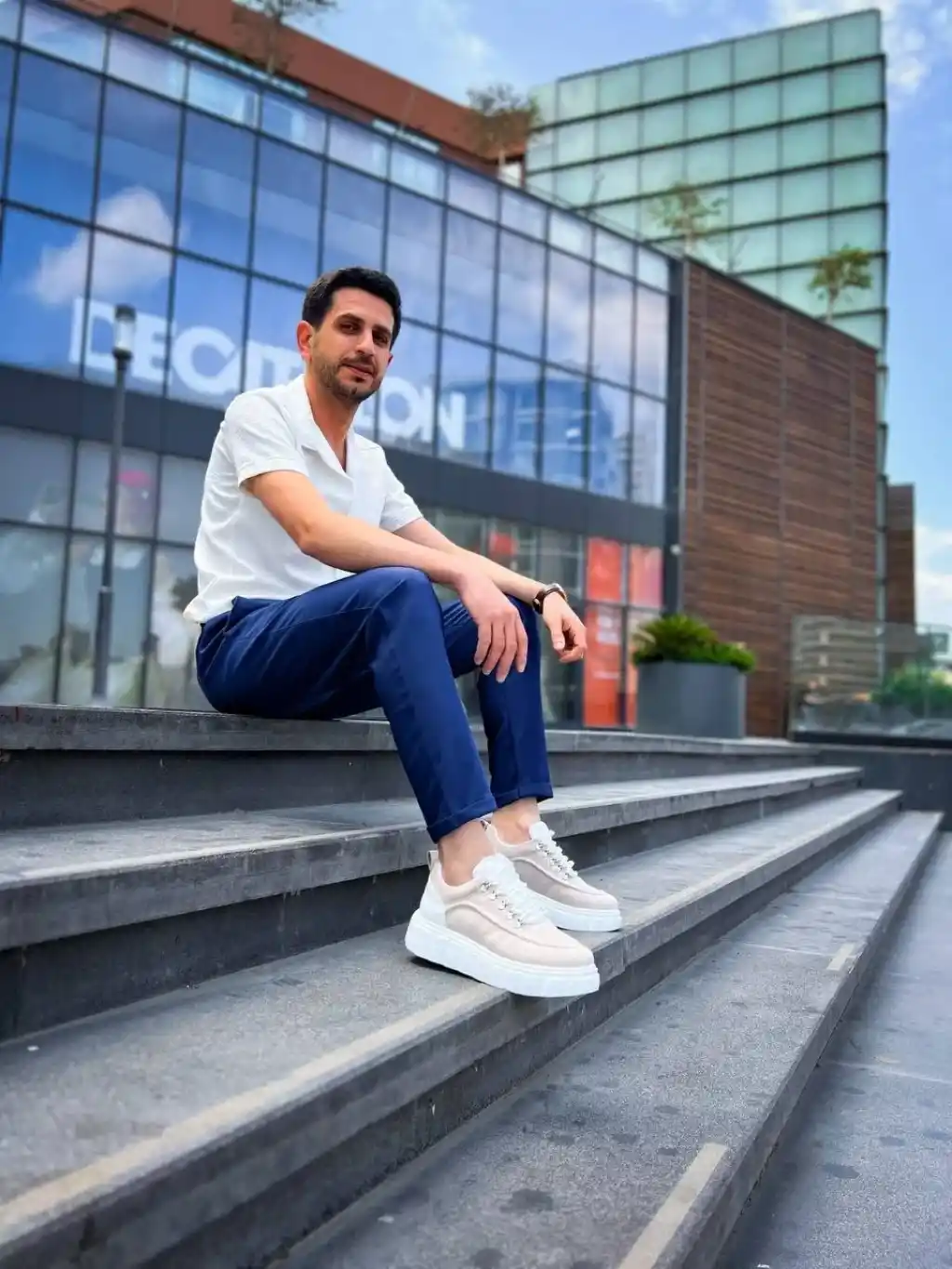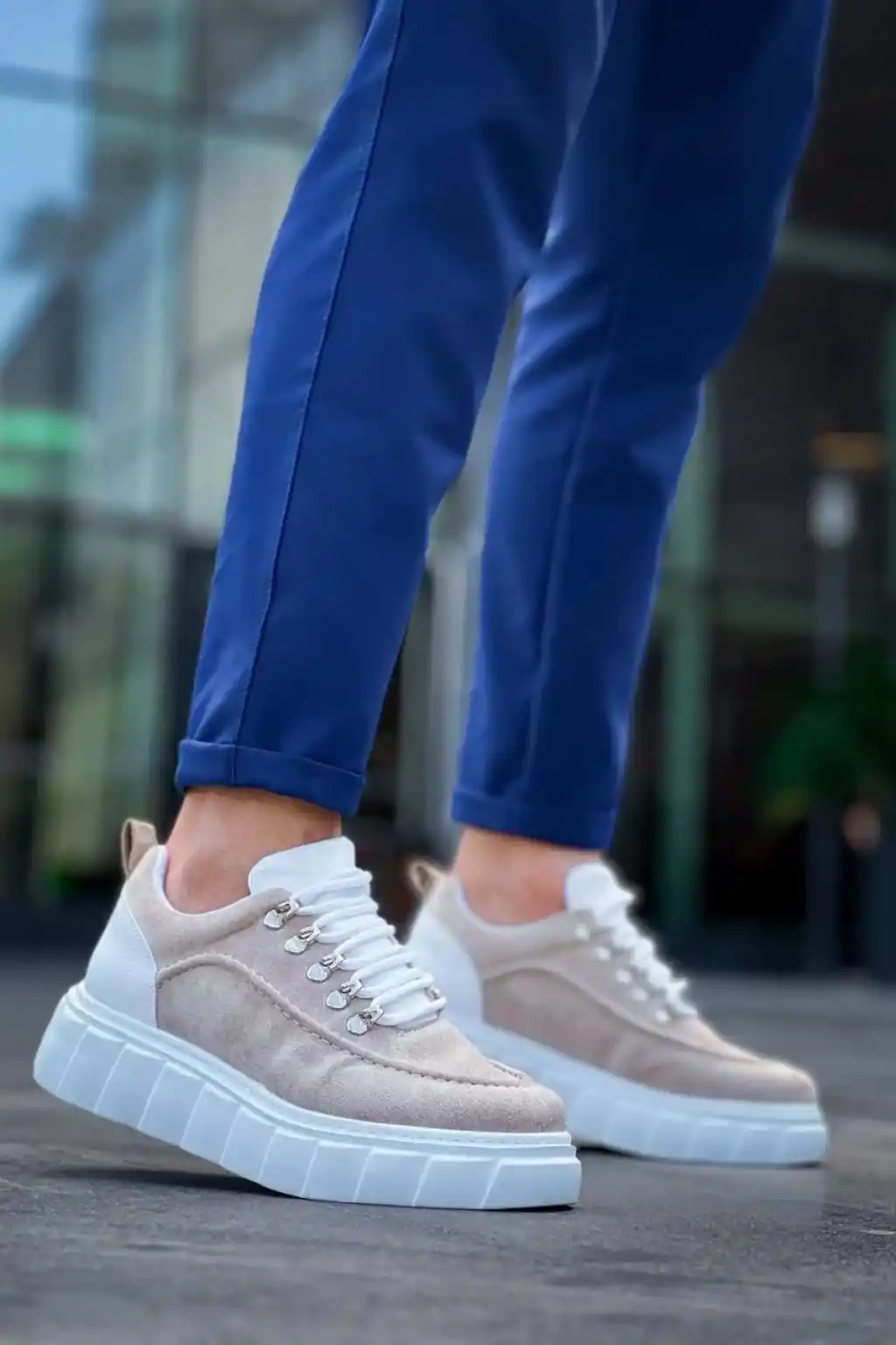 KB-X10 Kuback Bej Süet Beyaz Yüksek Taban Günlük Spor Ayakkabı