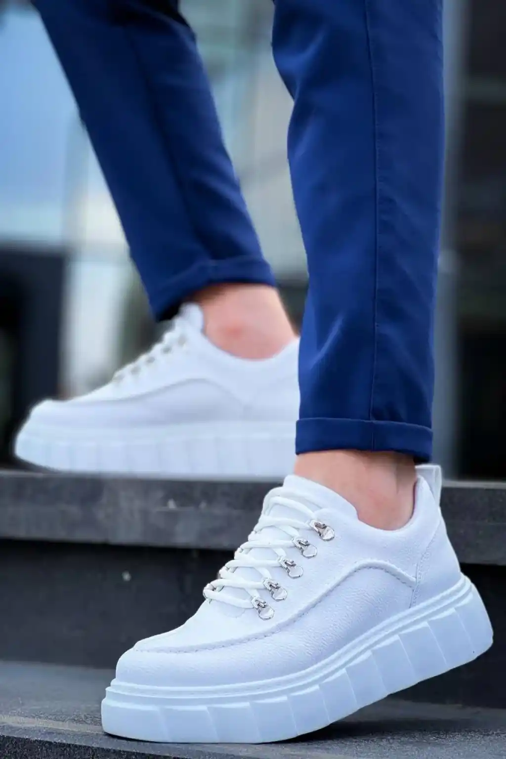 KB-X10 Kuback Beyaz Cilt Beyaz Yüksek Taban Günlük Spor Ayakkabı