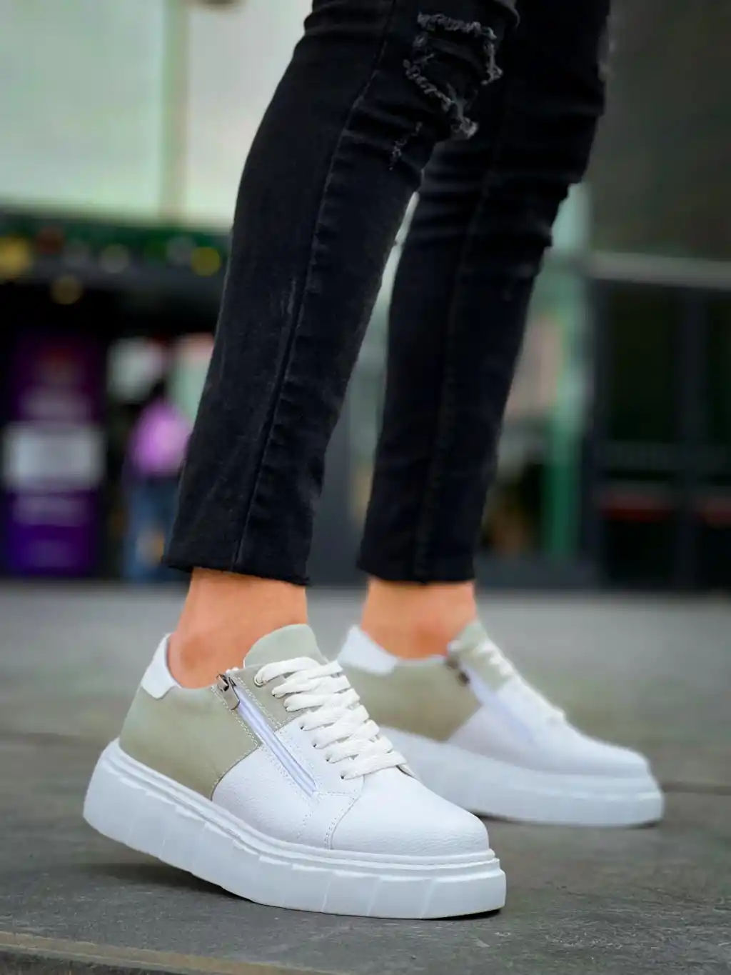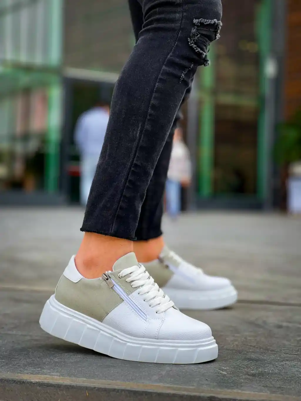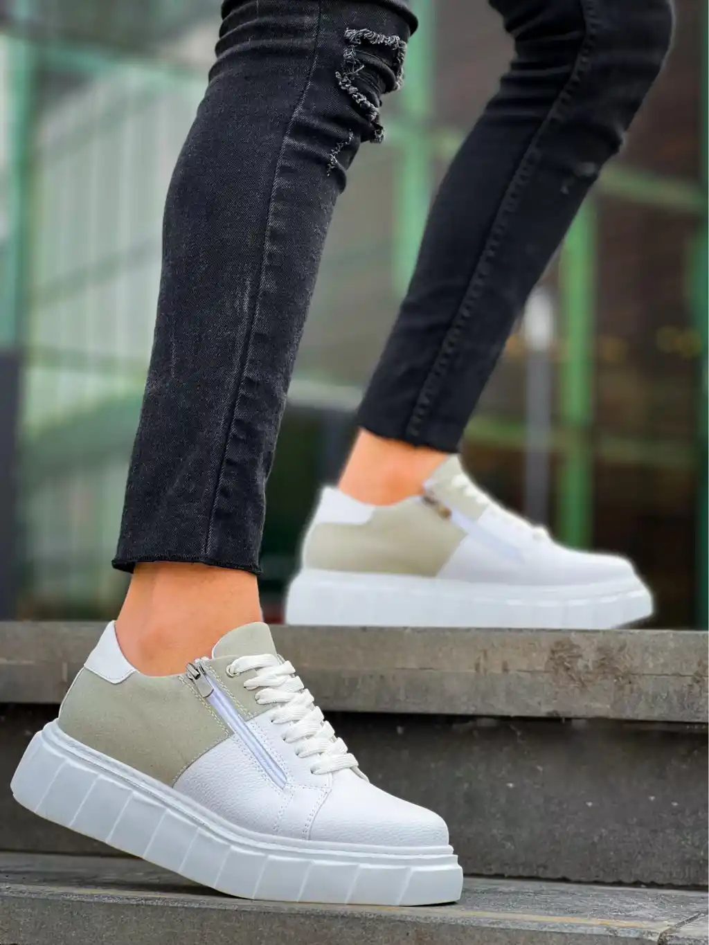 KB-X155 Kuback Beyaz Cilt Gri Süet Detaylı Beyaz Yüksek Taban Günlük Spor Ayakkabı