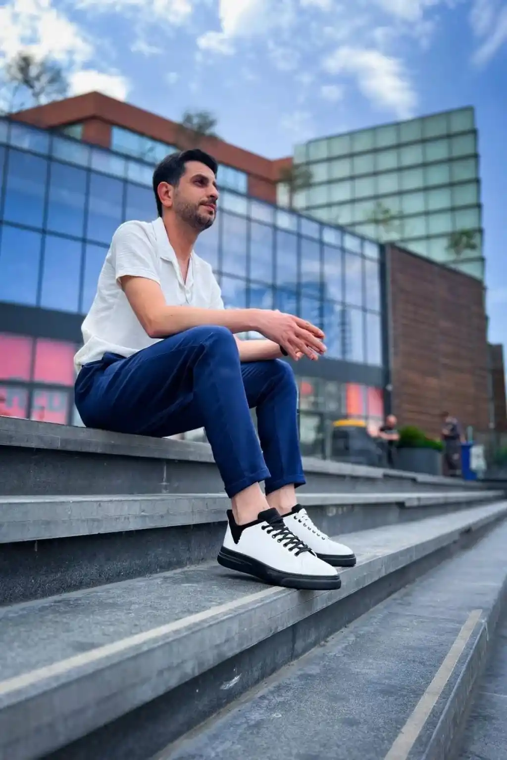 KB-X204 Kuback Beyaz Siyah Keten Siyah Yüksek Taban Günlük Erkek Spor Ayakkabı