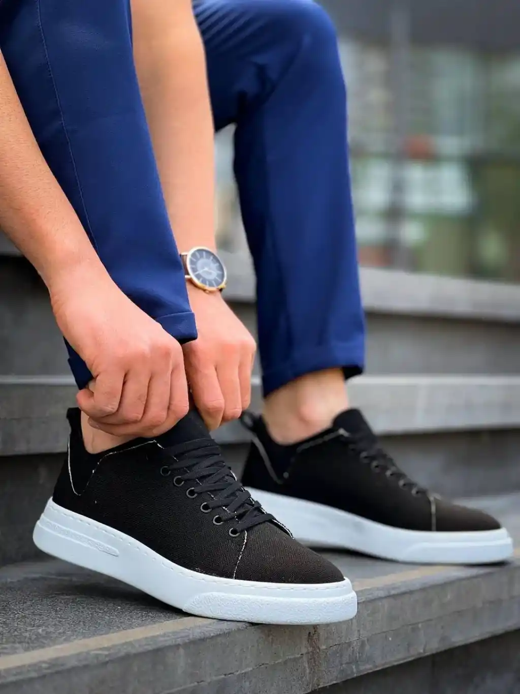 KB-X204 Kuback Siyah Keten Beyaz Yüksek Taban Günlük Erkek Spor Ayakkabı