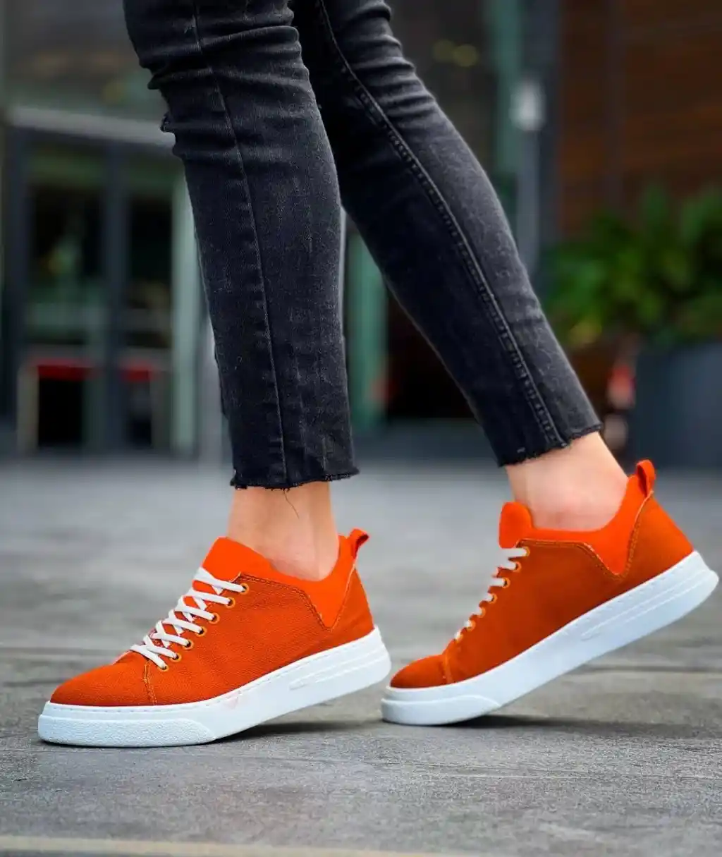 KB-X204 Kuback Turuncu Keten Beyaz Yüksek Taban Günlük Erkek Spor Ayakkabı