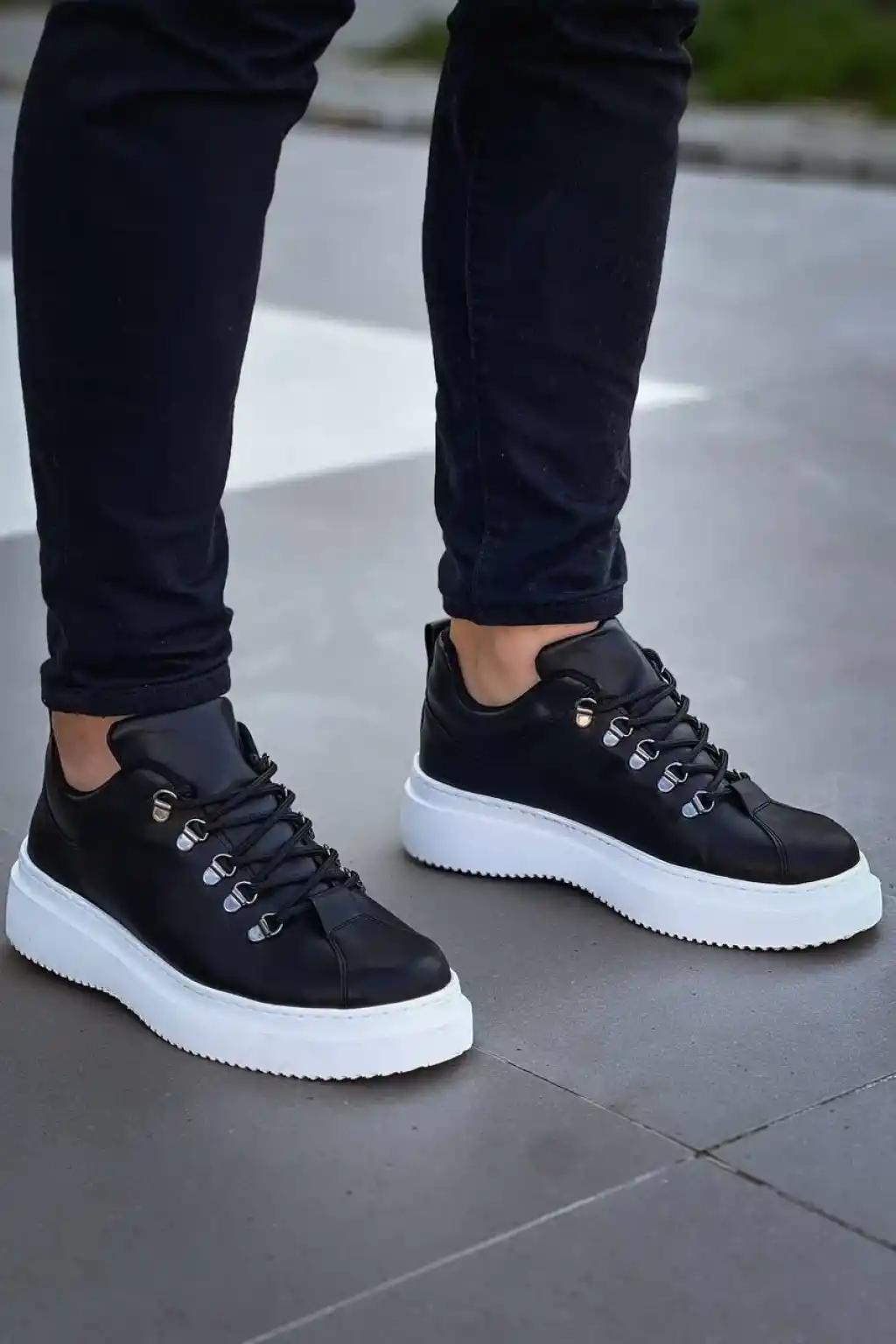 KB-X4 Kuback Siyah Cilt Yüksek Taban Bağcıklı Günlük Erkek Ayakkabı