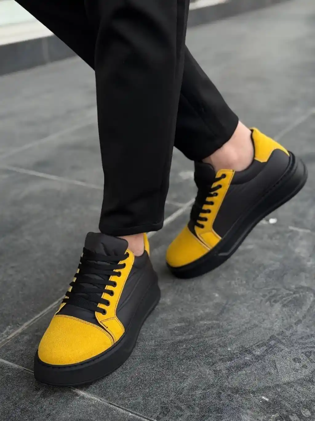 KB-X46 Kuback Siyah Sarı Yüksek Siyah Taban Günlük Spor Ayakkabı