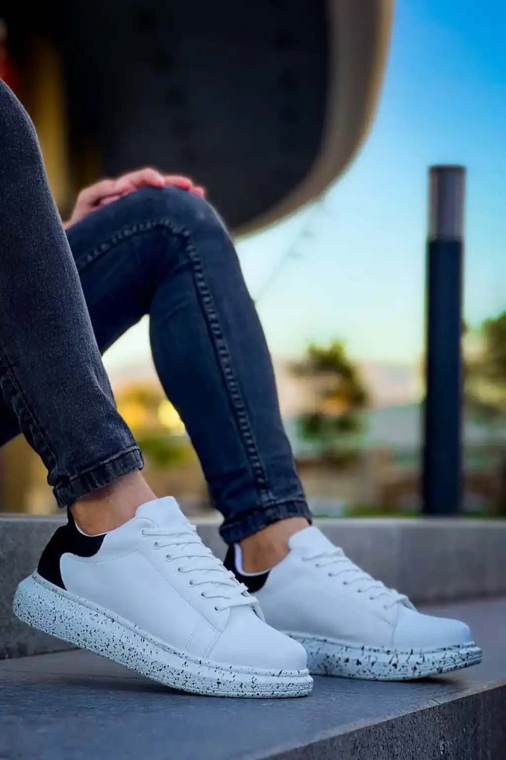 KB-X500 Kuback Beyaz Siyah Yüksek Taban Bağcıklı Günlük Erkek Ayakkabı