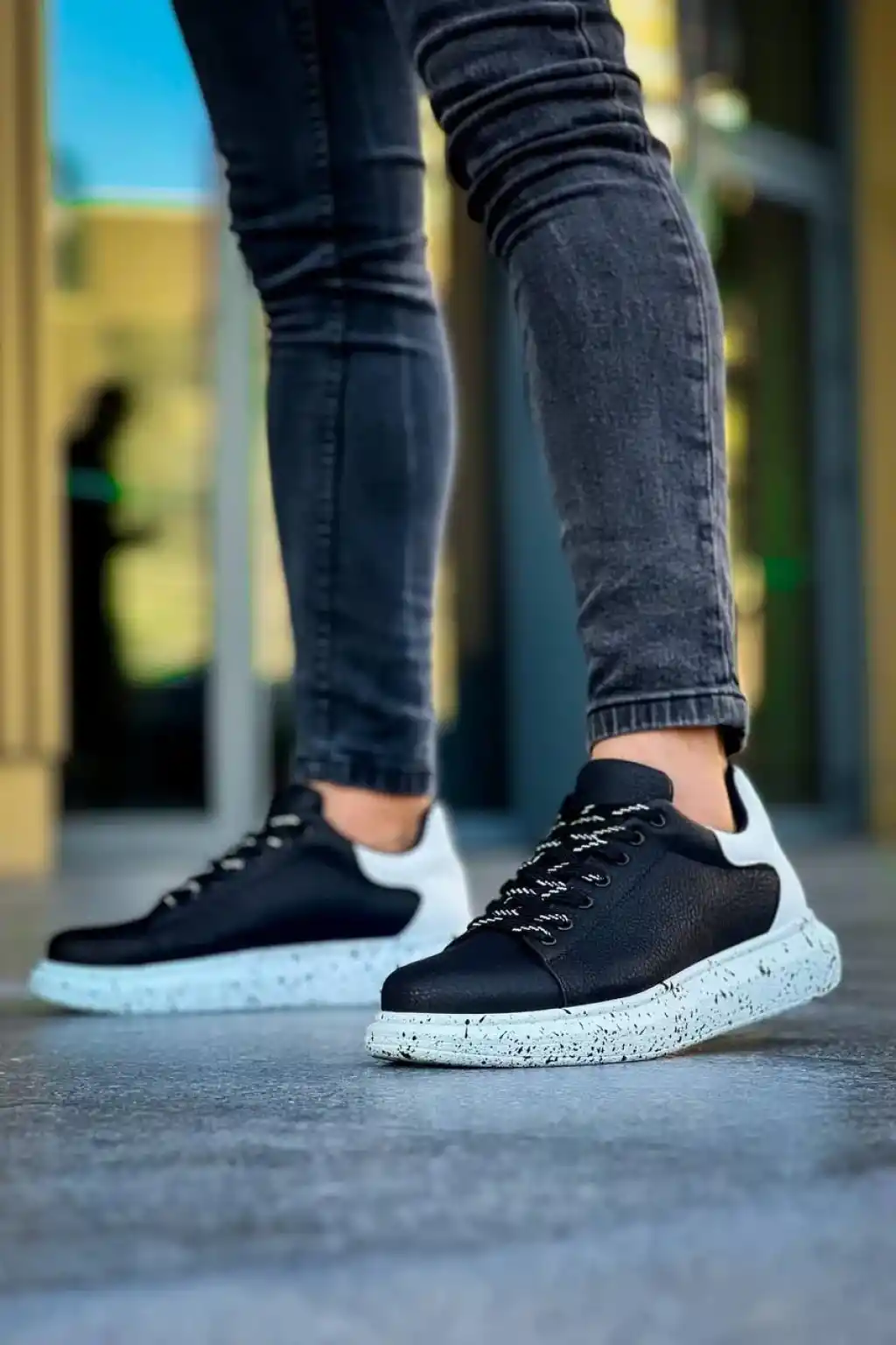 KB-X500 Kuback Siyah Beyaz Yüksek Taban Bağcıklı Günlük Erkek Ayakkabı