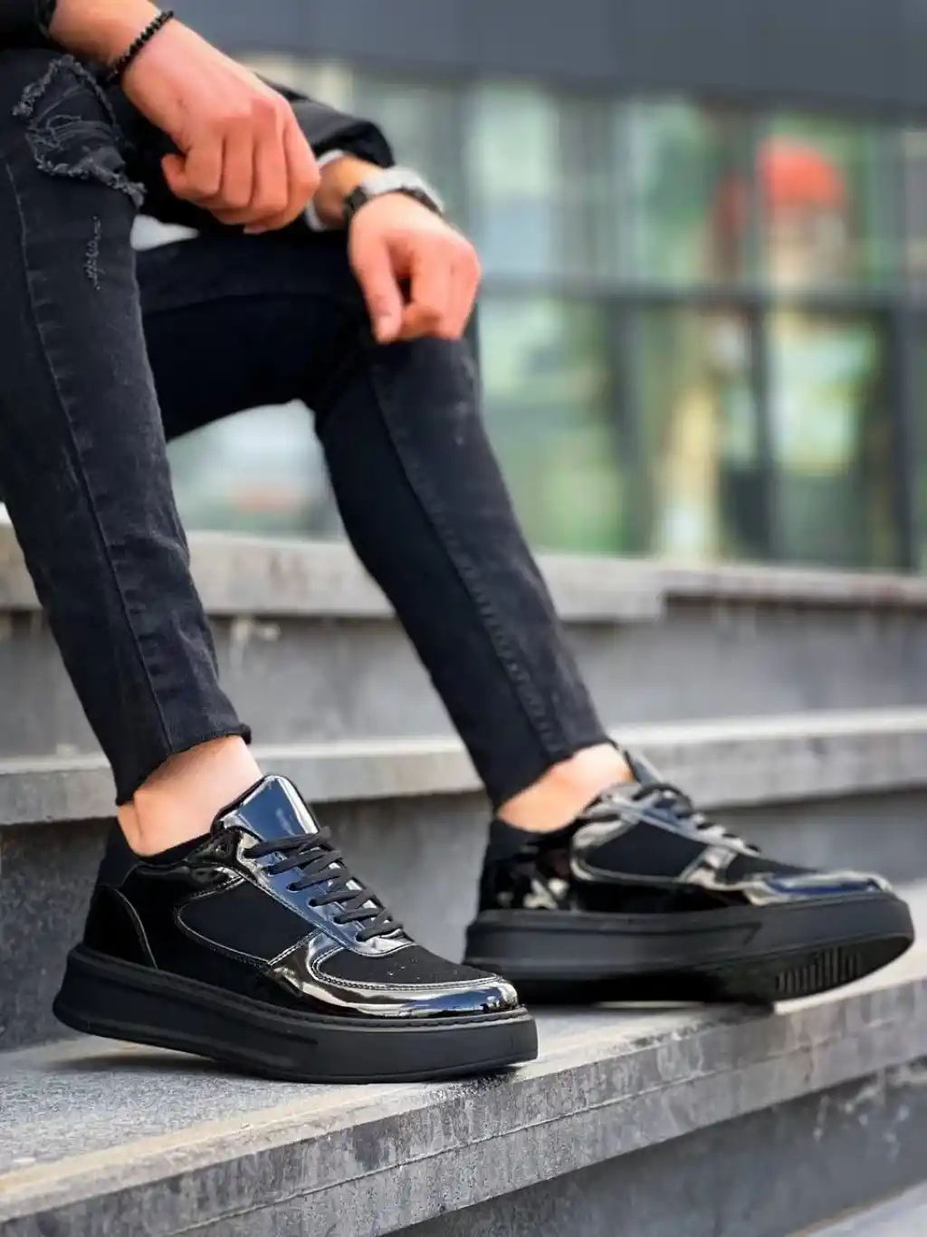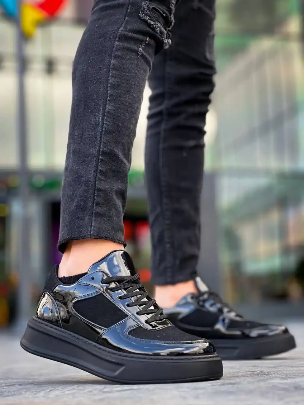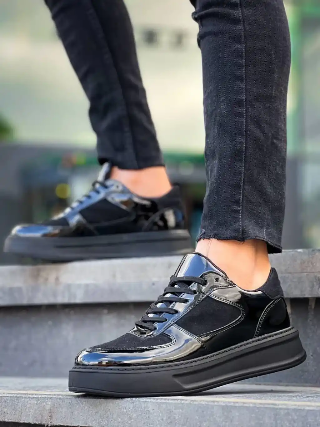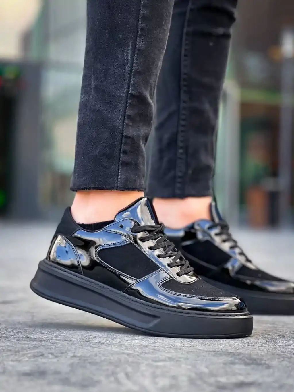 KB-X8 Kuback Siyah Rugan Yüksek Siyah Taban Günlük Spor Ayakkabı