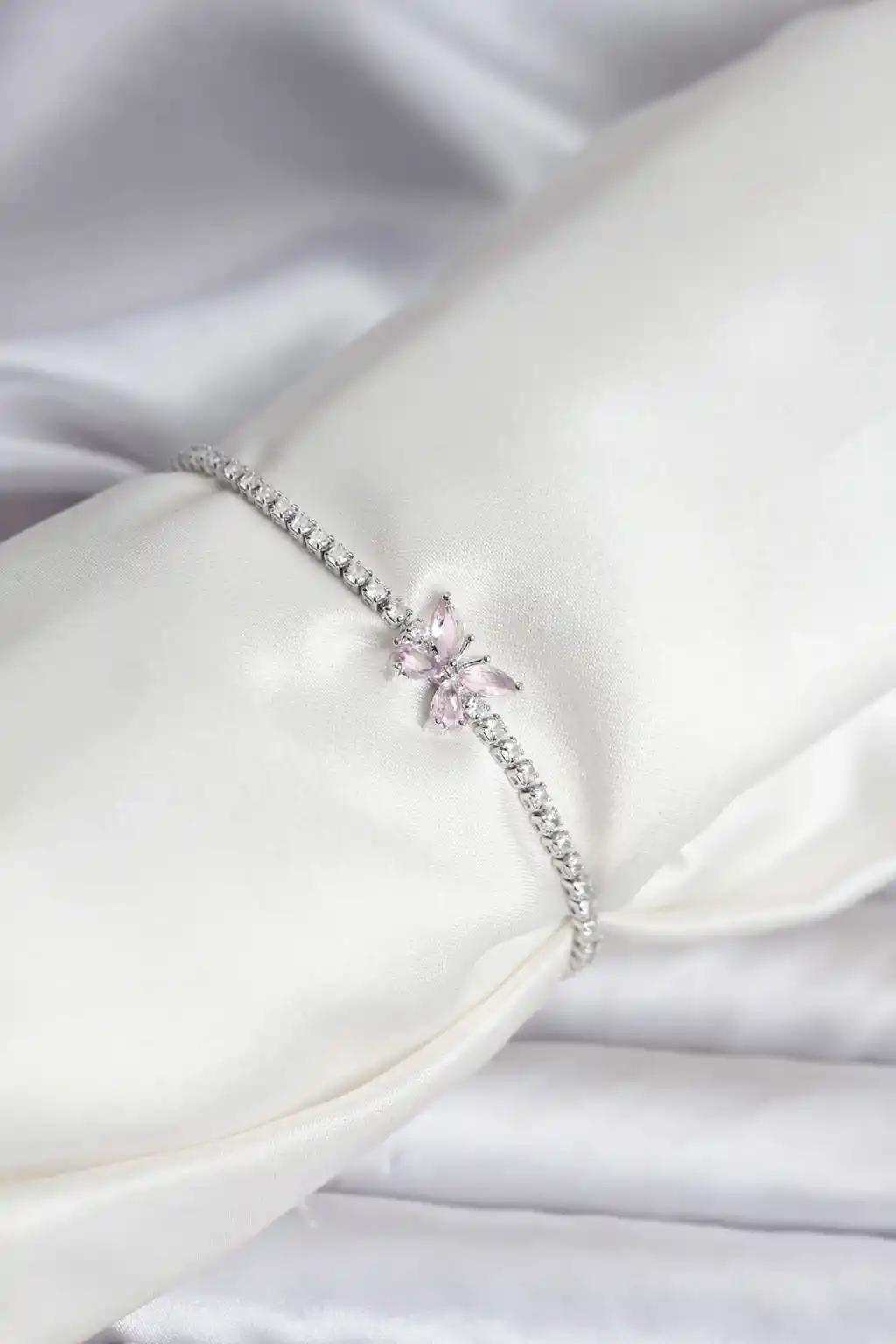 Kelebek Model Zirkon Taşlı Gümüş Renk Pirinç Su Yolu Kadın Bileklik