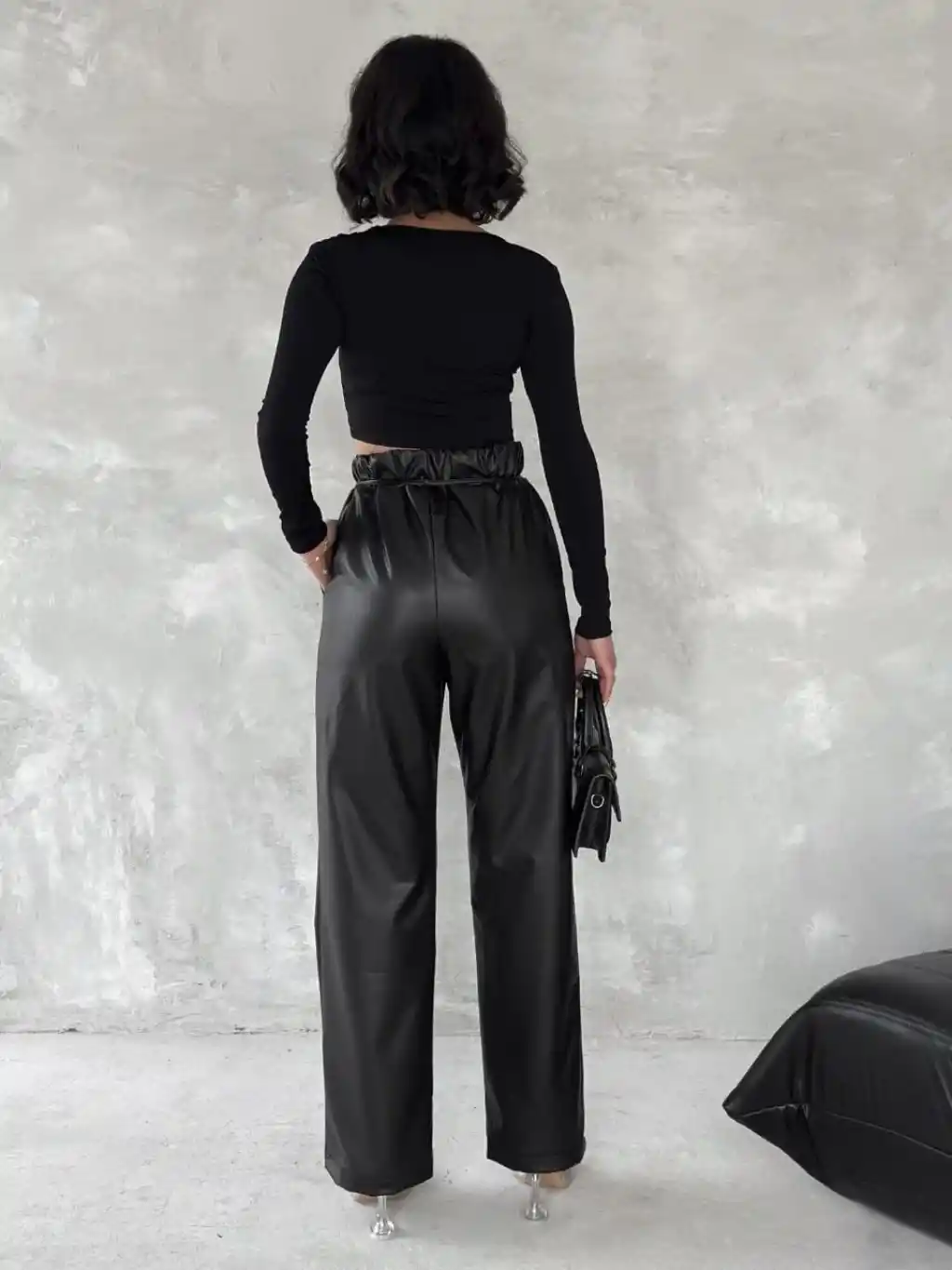 İnce kemer detayıyla şık bir görünüm sunan T1178 Deri Pantolon, gardırobunuzun vazgeçilmez parçalarından biri olmaya aday!