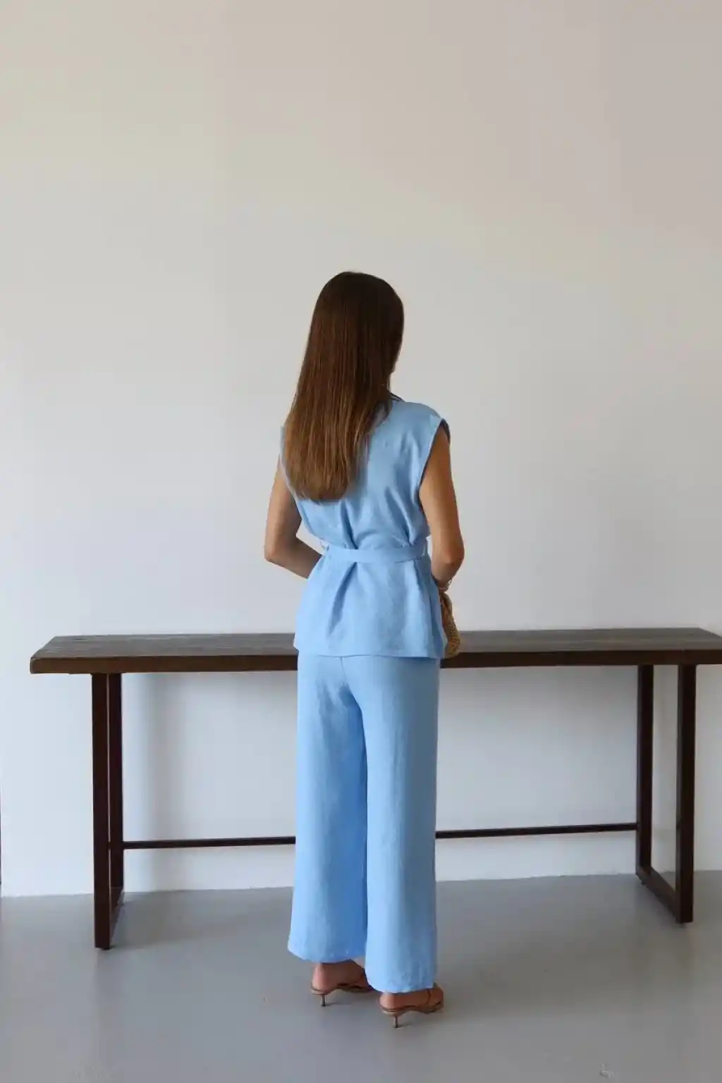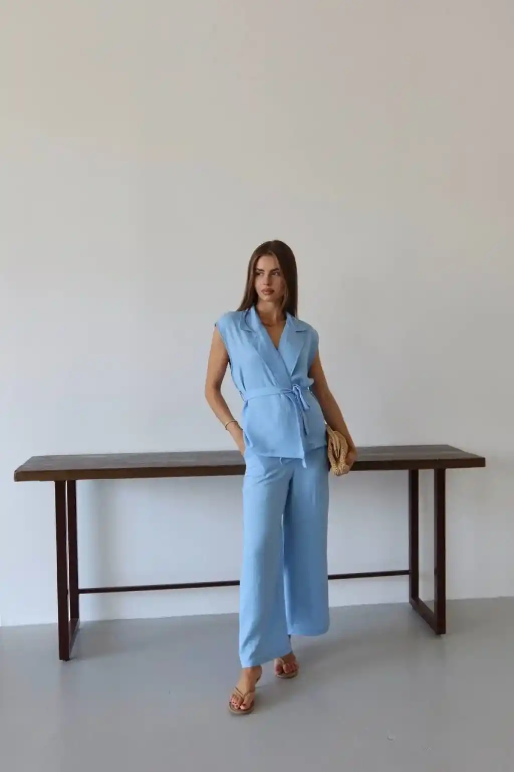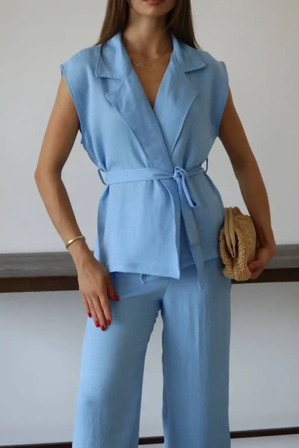 Pantolon yırtmaçlı elbise ikili triko takım vizon elf