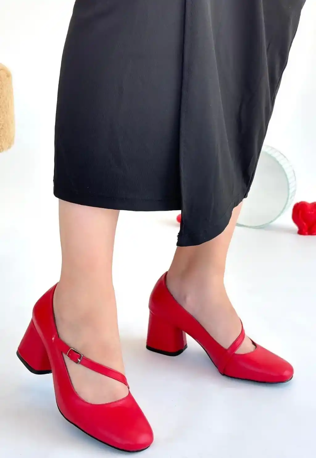 Kier Kırmızı Cilt Topuklu Ayakkabı