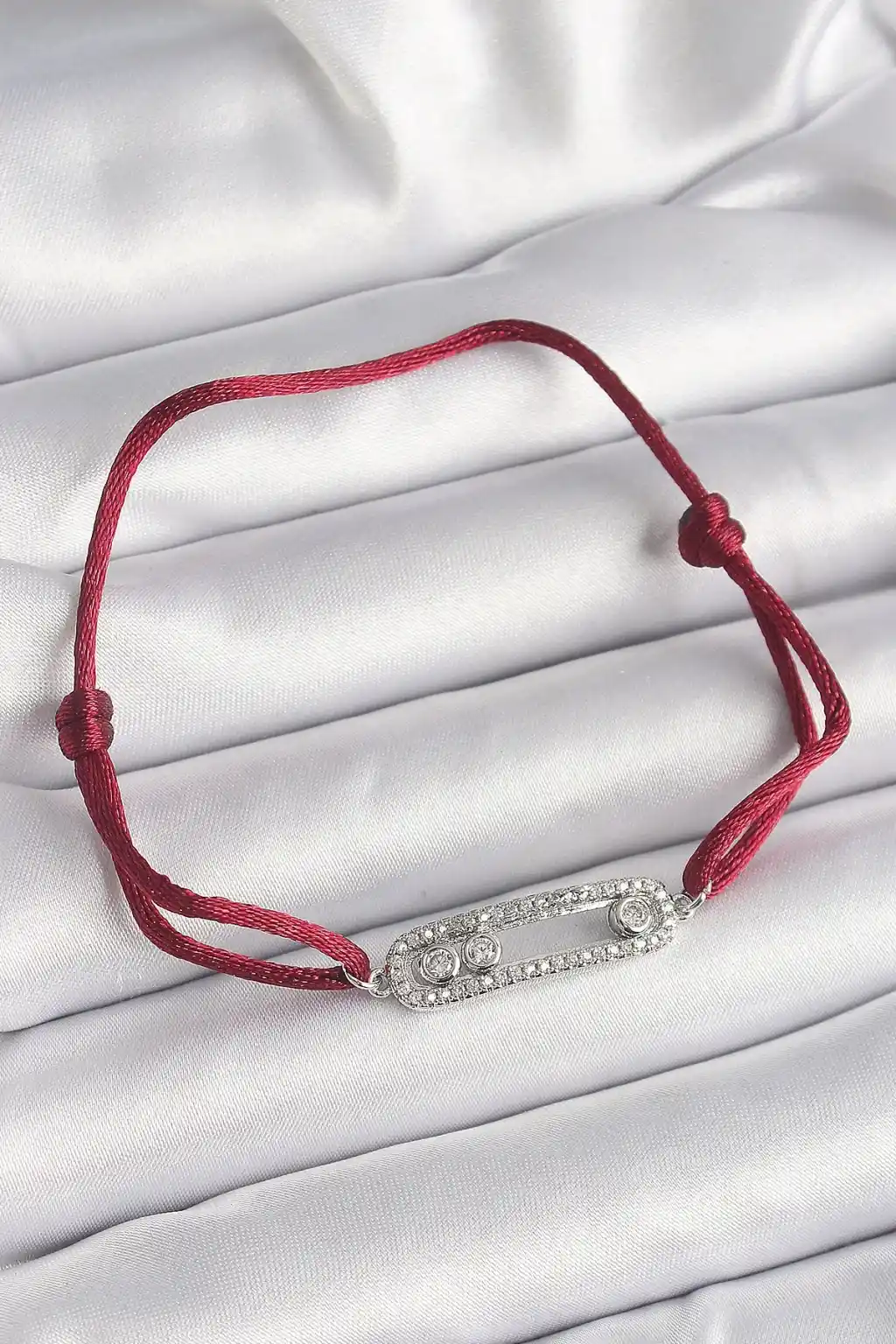 Kırmızı İpli Asansörlü Zirkon Taşlı Gümüş Messika Model Kadın Bileklik