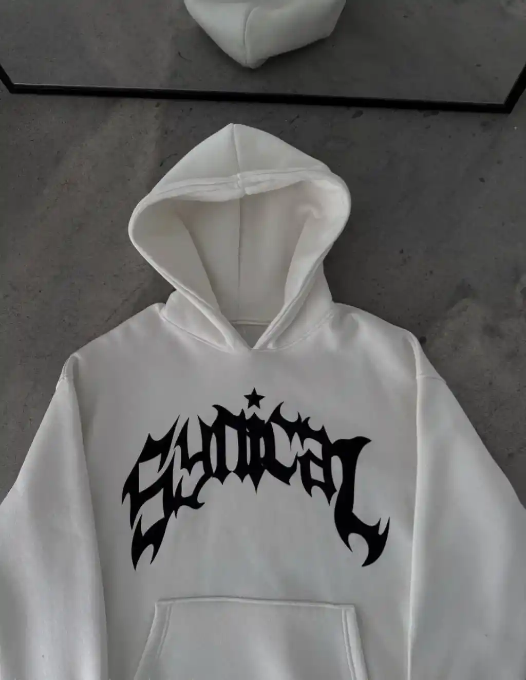 Kışlık Kapüşonlu Baskılı Oversize SweatShirt- Beyaz