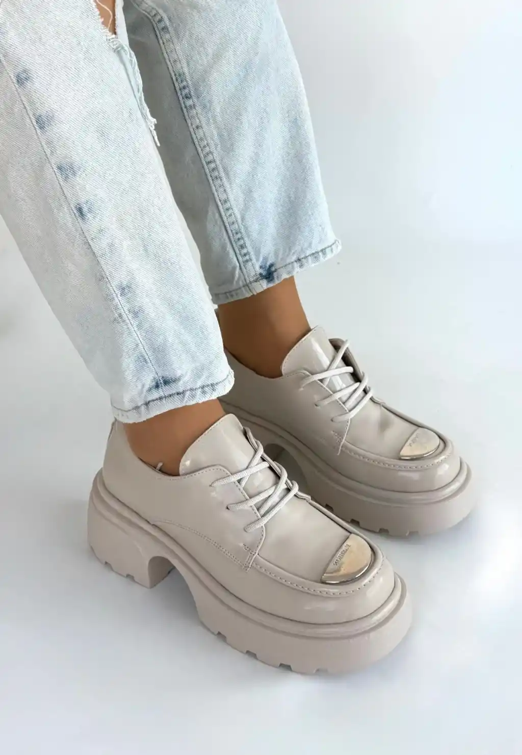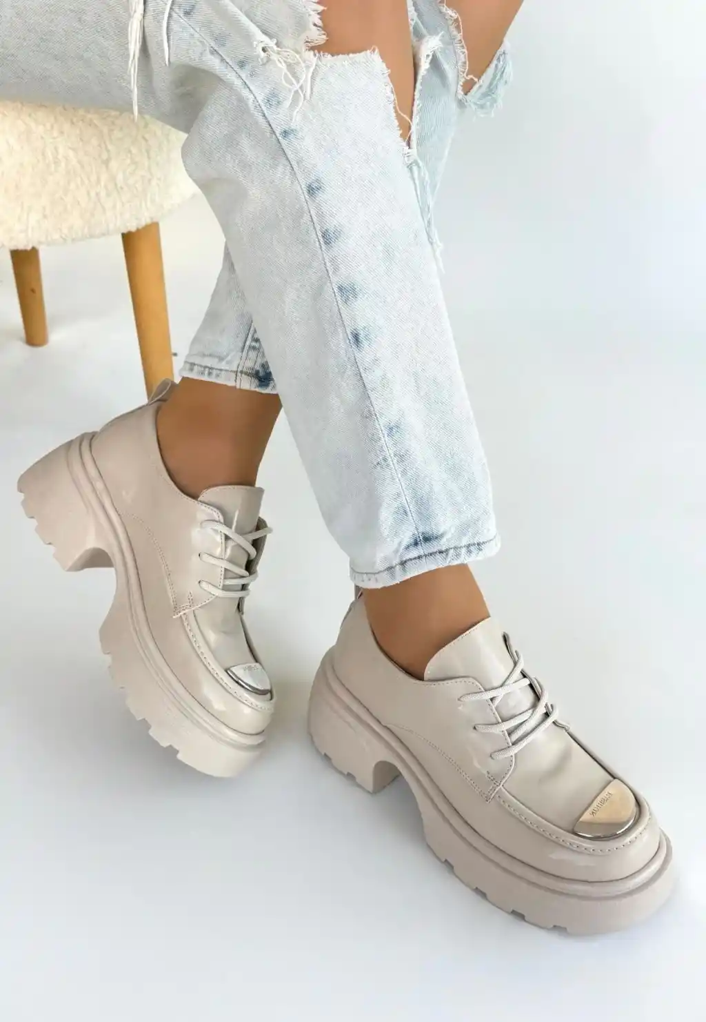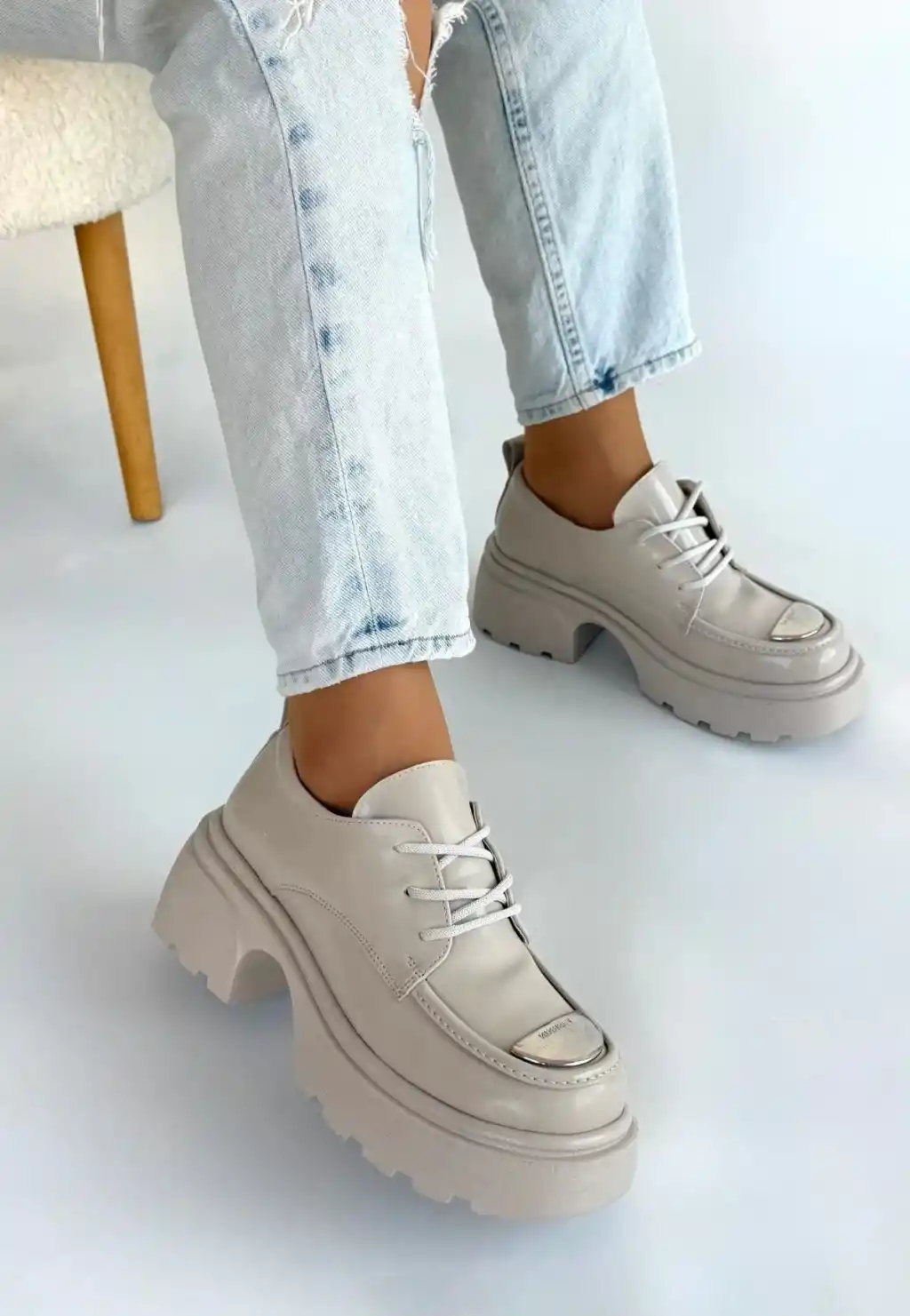 Kiya Bej Rugan Dolgu Topuk Oxford Ayakkabı