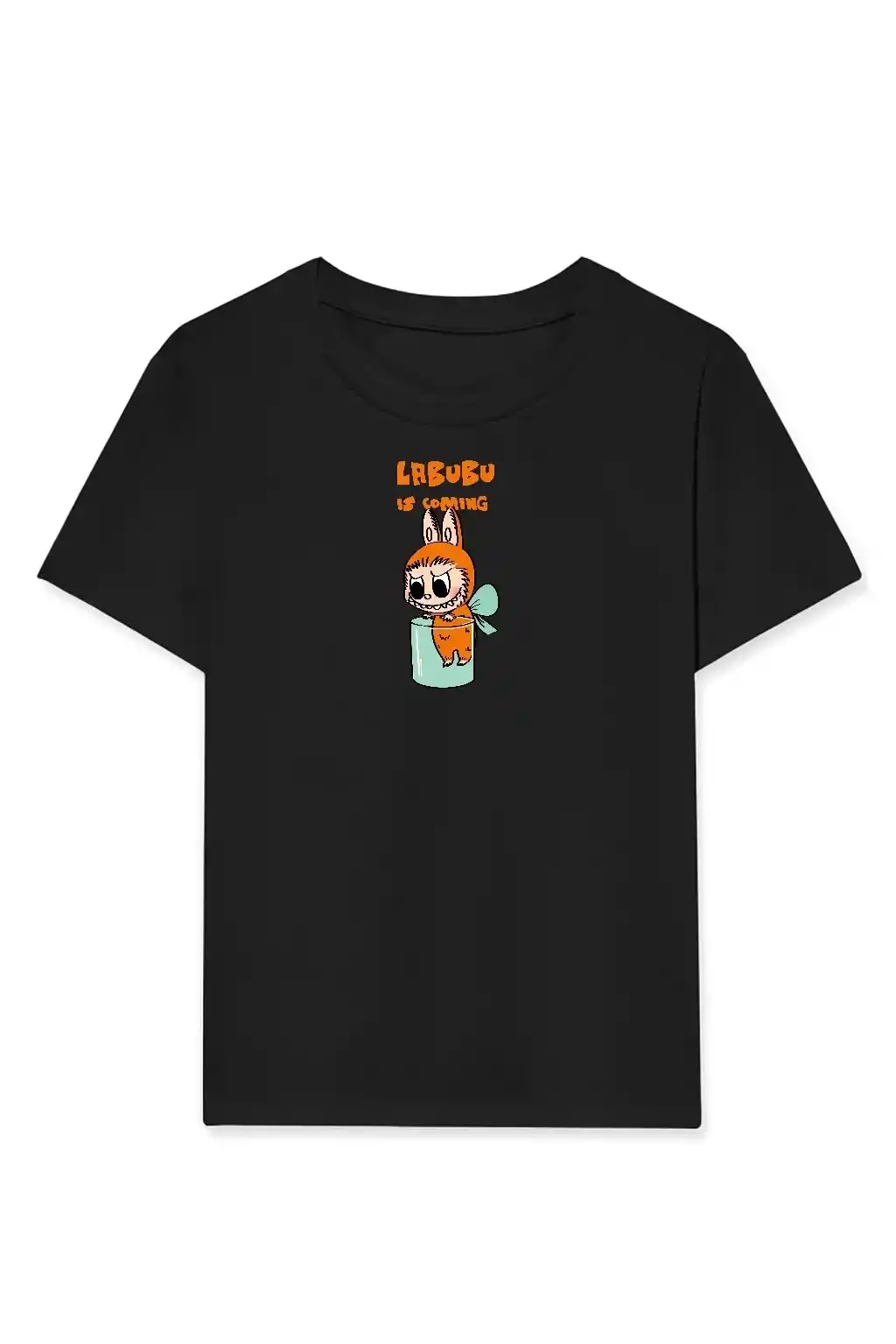 Kız Labubu Çocuk Baskılı T-Shirt - Siyah