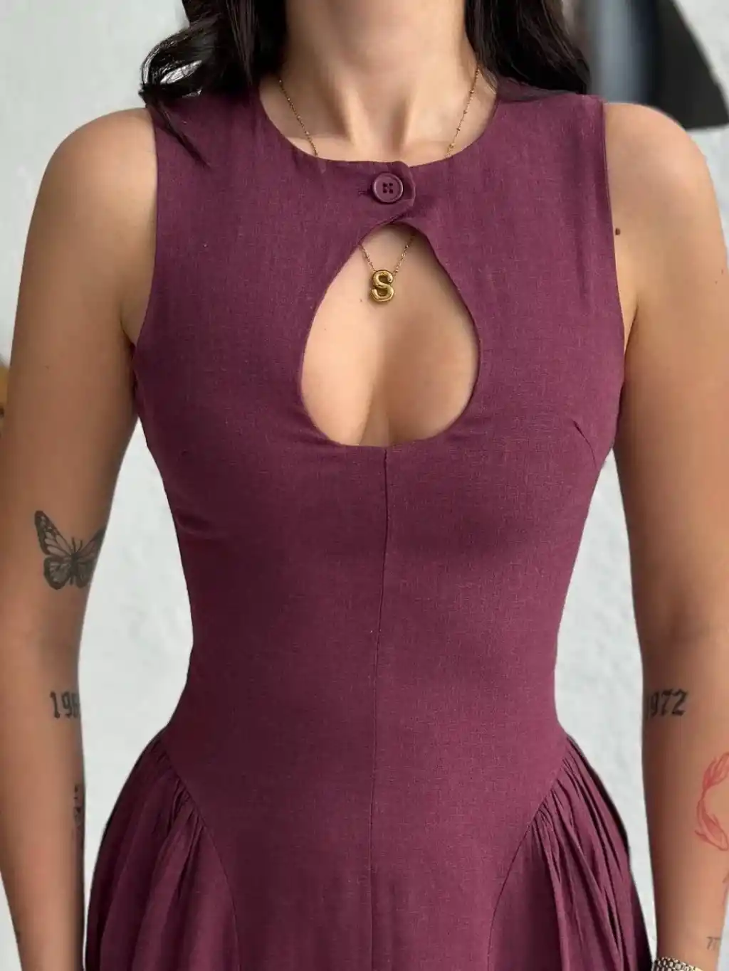 Kolsuz Uzun Kabardin Elbise - Bordo