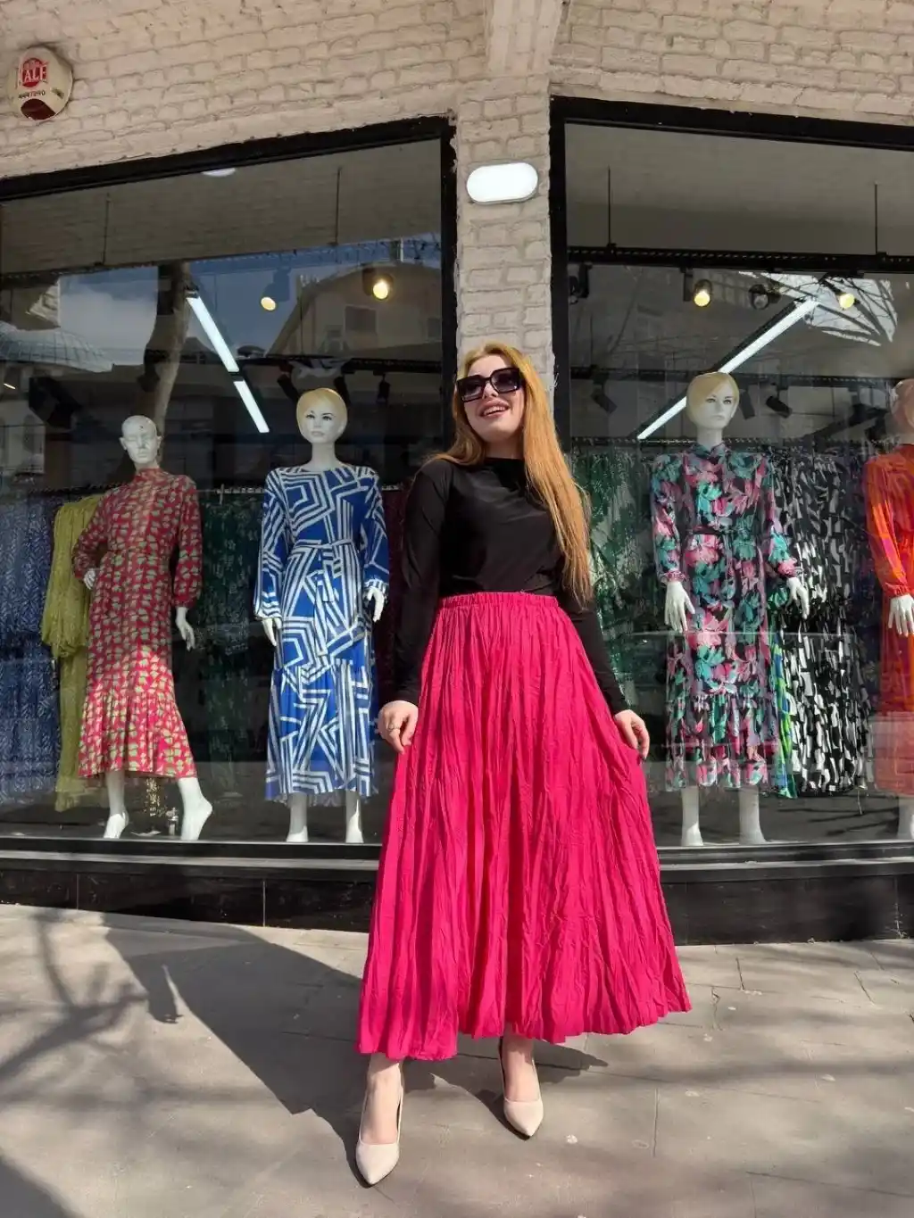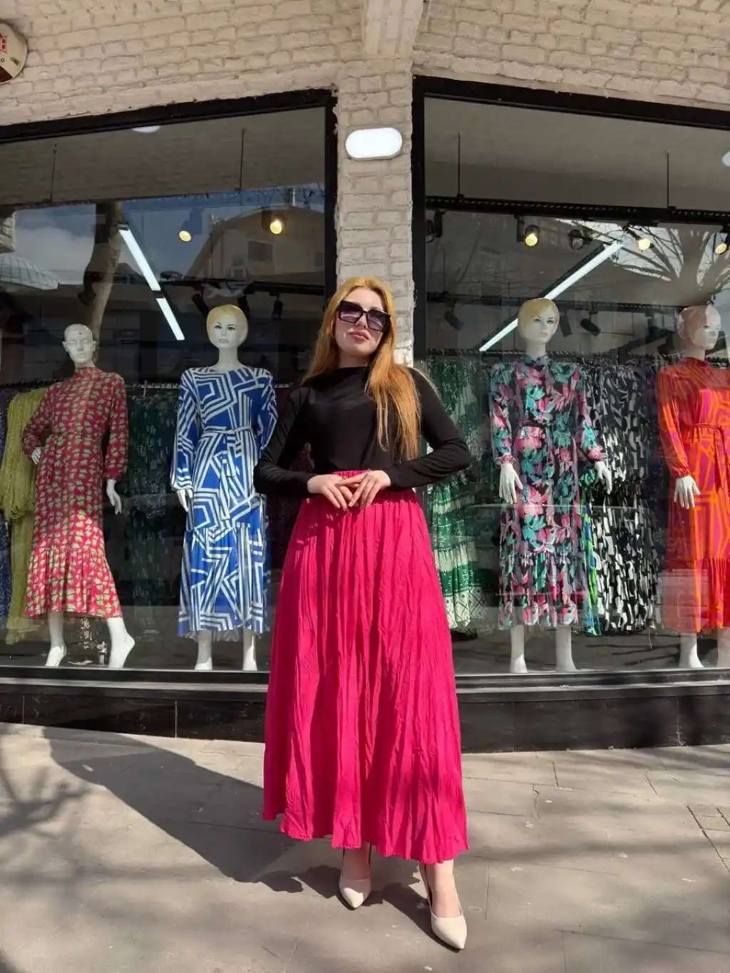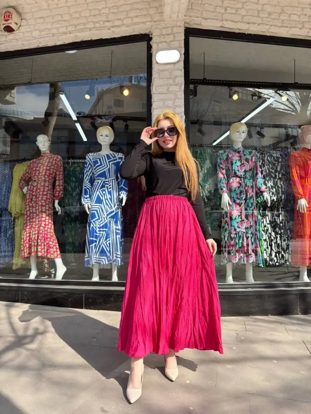 Cep detaylı oval kapaklı deri etek fuşya h240048