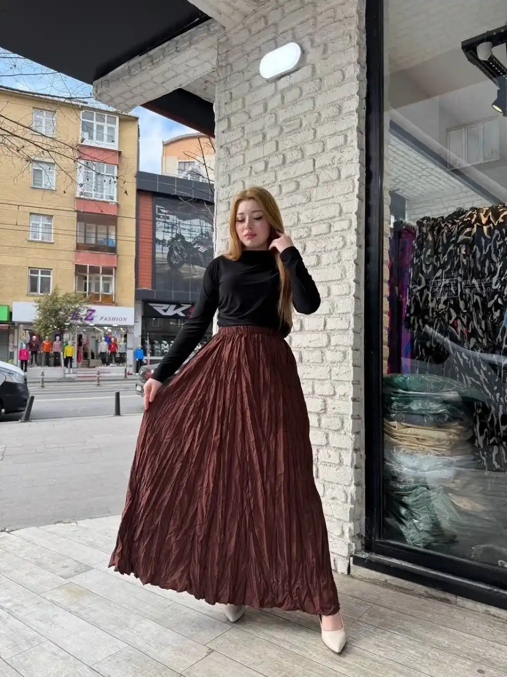 Cep detaylı oval kapaklı deri etek kahve h240048