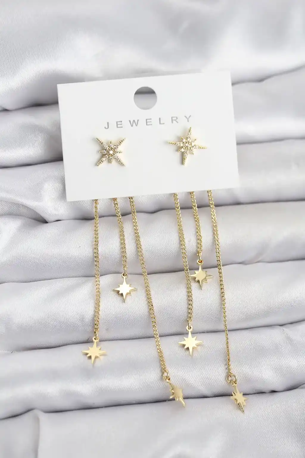 Kutup Yıldızı Model Gold Renk Pirinç Sallantılı Kadın Küpe