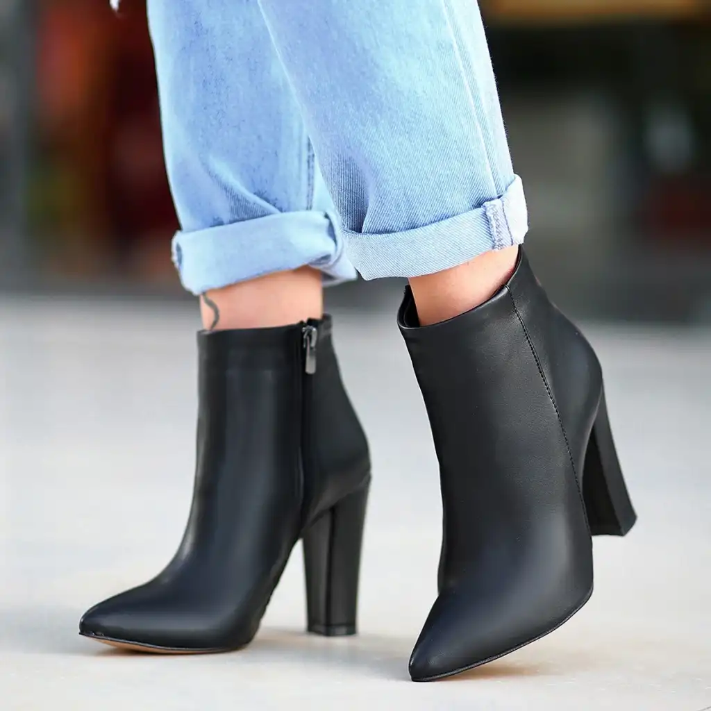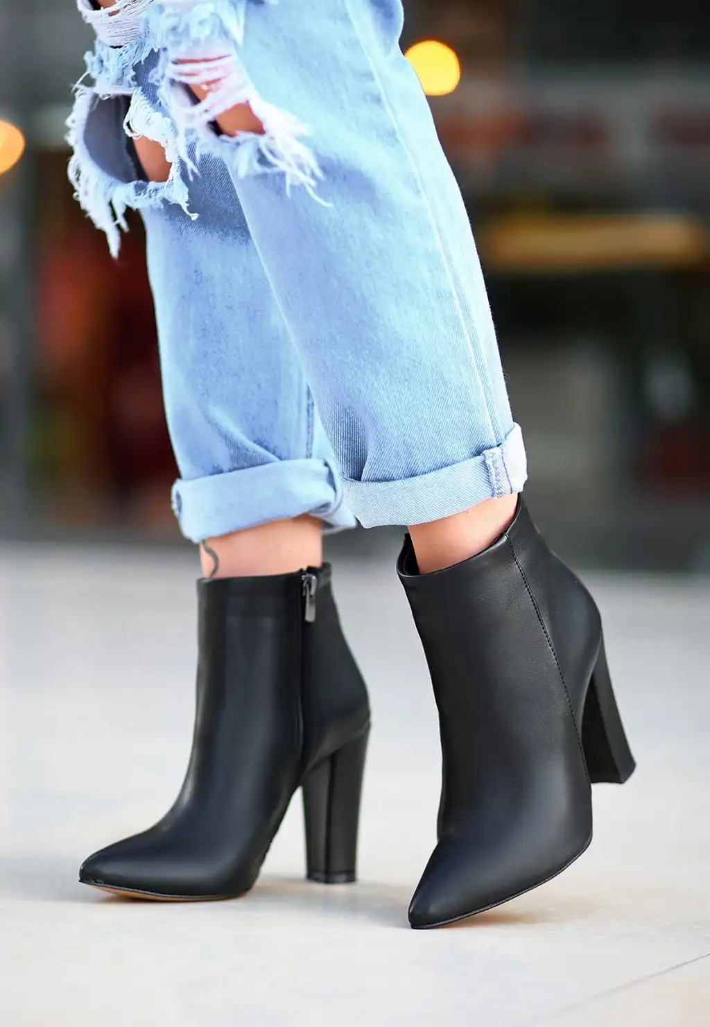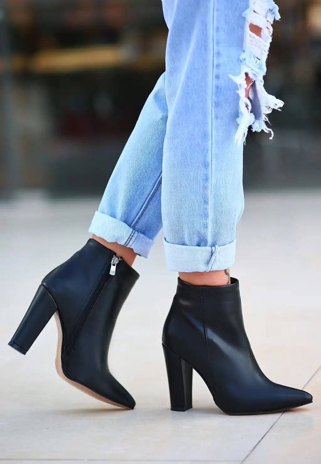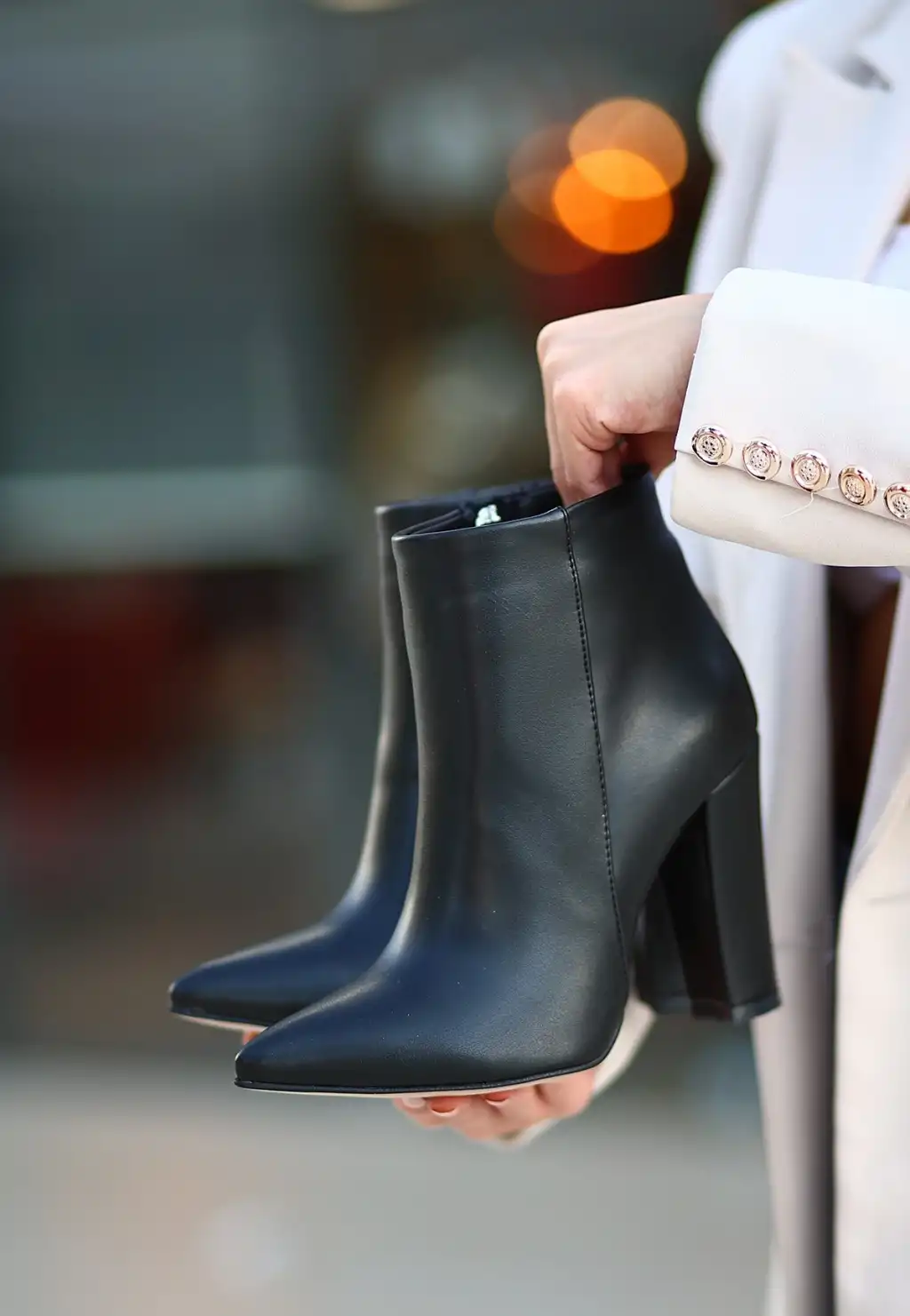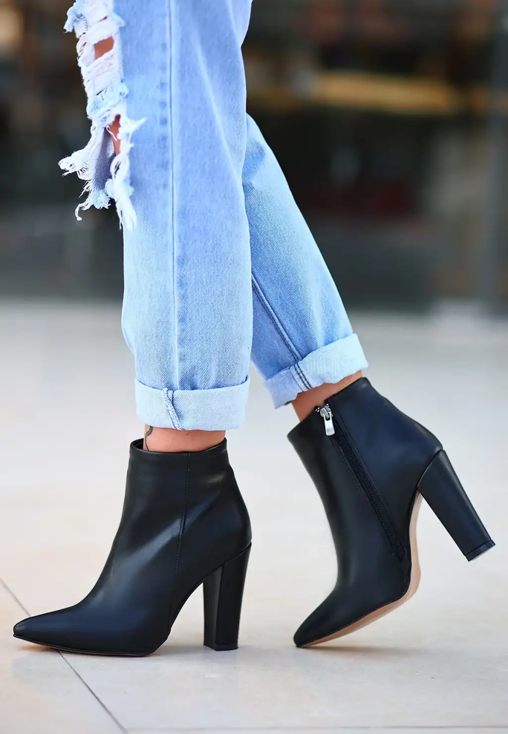 • LOORA SİYAH CİLT TOPUKLU BOT